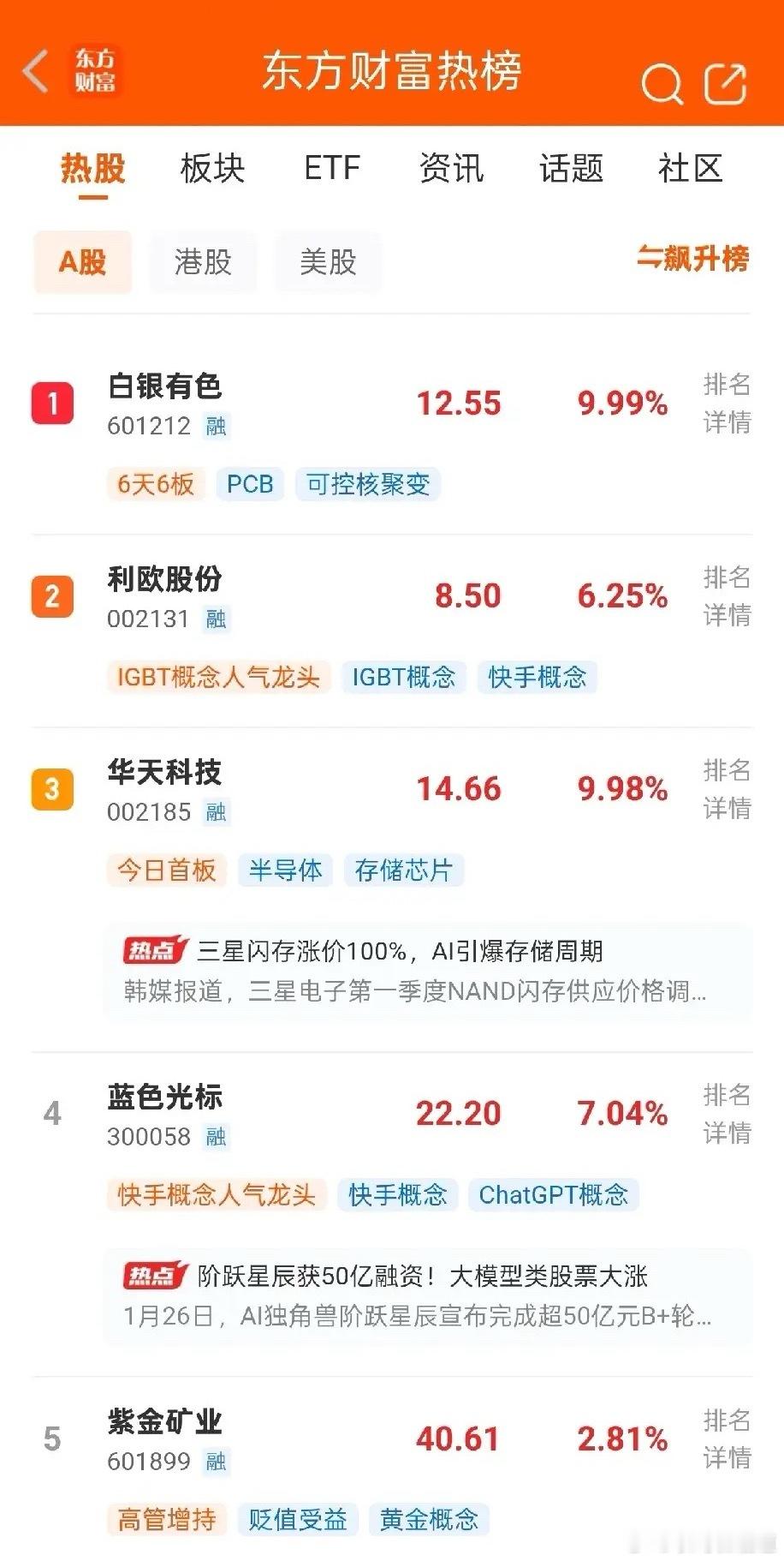 人气暴涨板块又换了新的一批股票,发生了什么?目前人气榜霸榜第一名的依然是白银有色