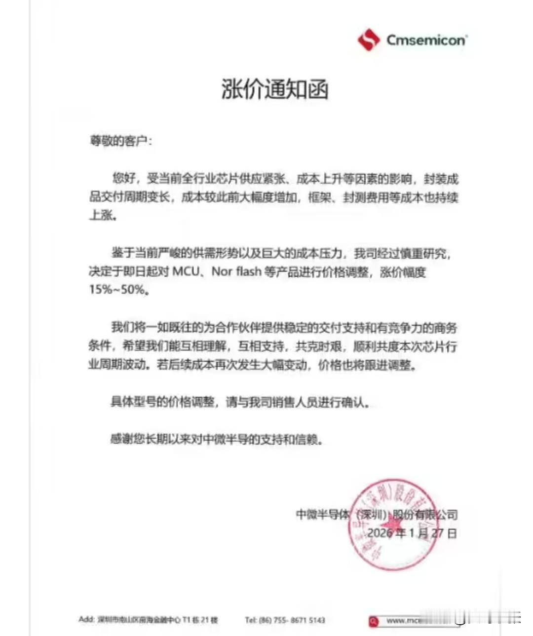 芯片涨价潮再升级!两份涨价通告中看出国产芯片涨价趋势不可阻挡了! 中微半导体、国科微接连发布涨价通知,MCU、Nor flash及存储芯片全线调价,涨幅最高达80%!受全行业供应紧张、成本持续上涨影响,封装交付周期拉长,供需缺口持续扩大。 芯片产业链成本传导加速,相关企业盈利弹性有望释放,关注芯片涨价主线投资机会!