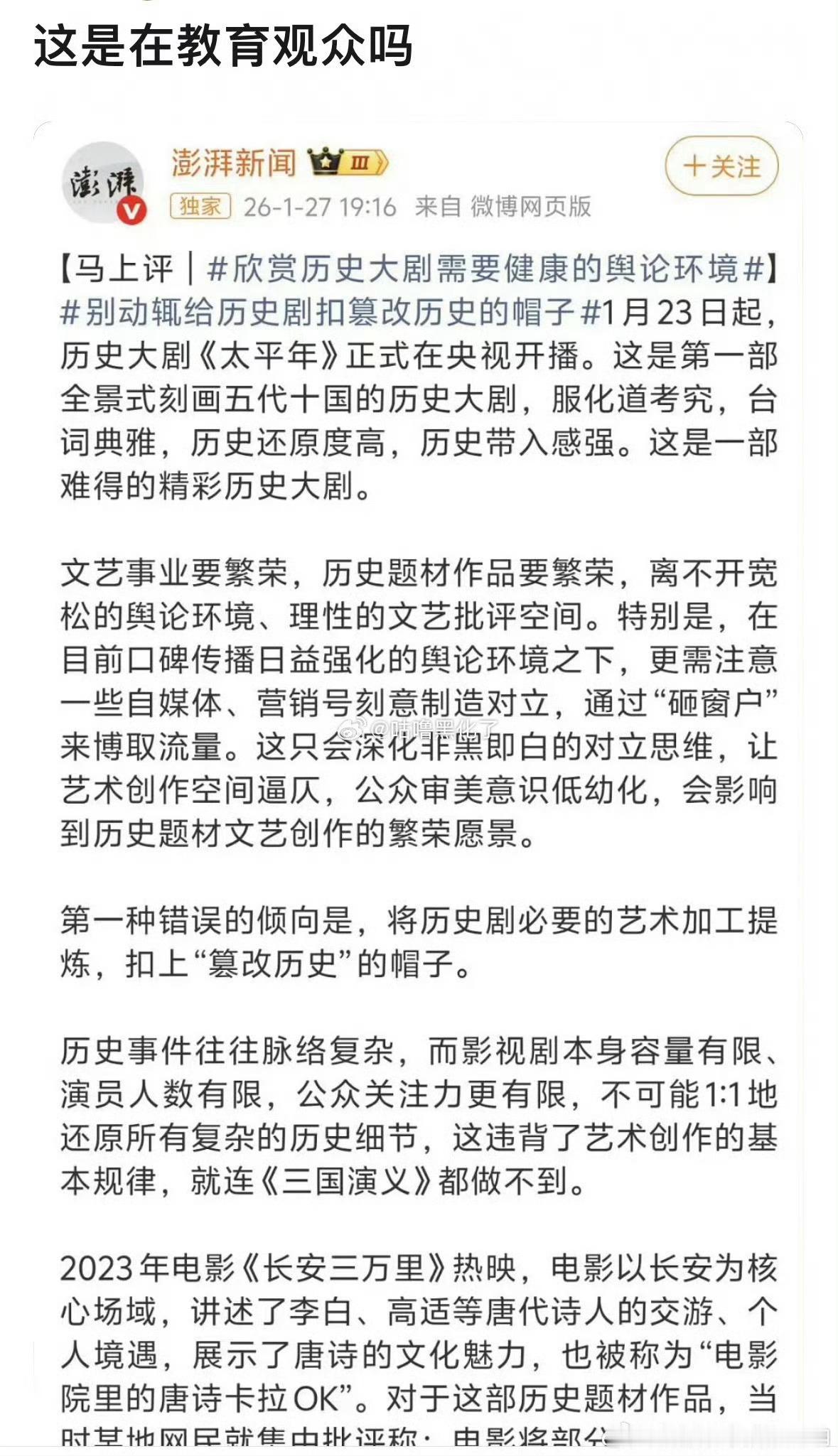 太平年如果觉得自己播的差就找找自己问题,别教育观众了。太平年编剧
