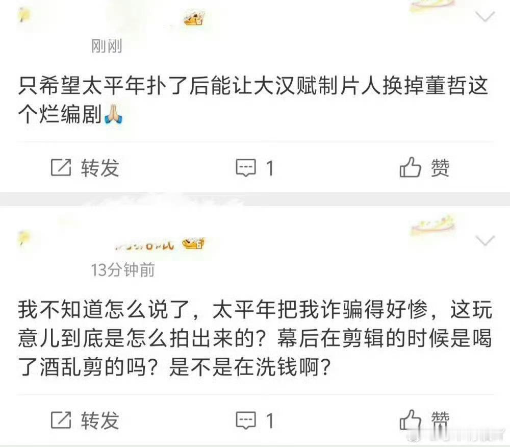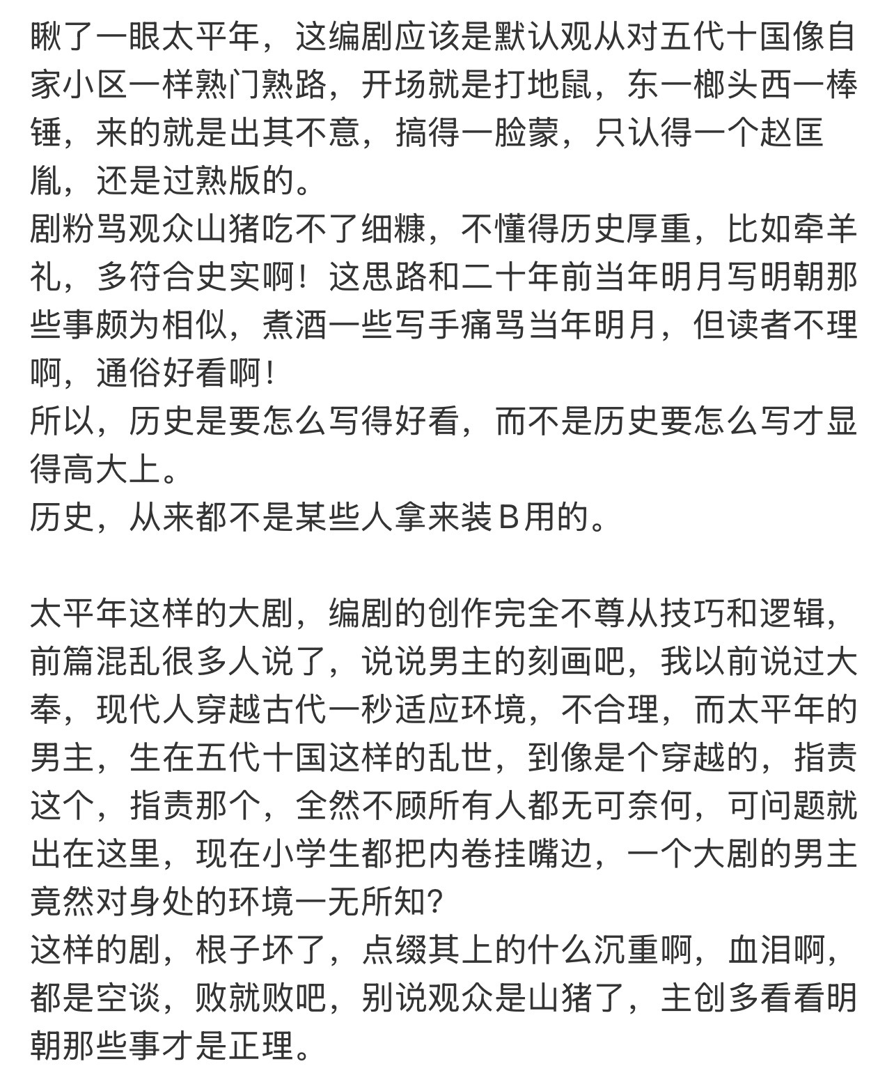 太平年如果觉得自己播的差就找找自己问题,别教育观众了。 太平年编剧