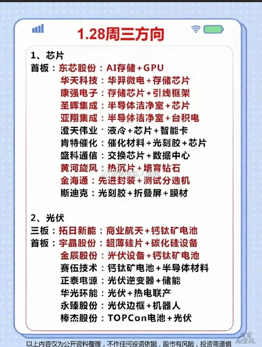 1.28周三市场热点+投资逻辑!1.存储芯片2.光伏:钙钛矿电池,逆变器,储