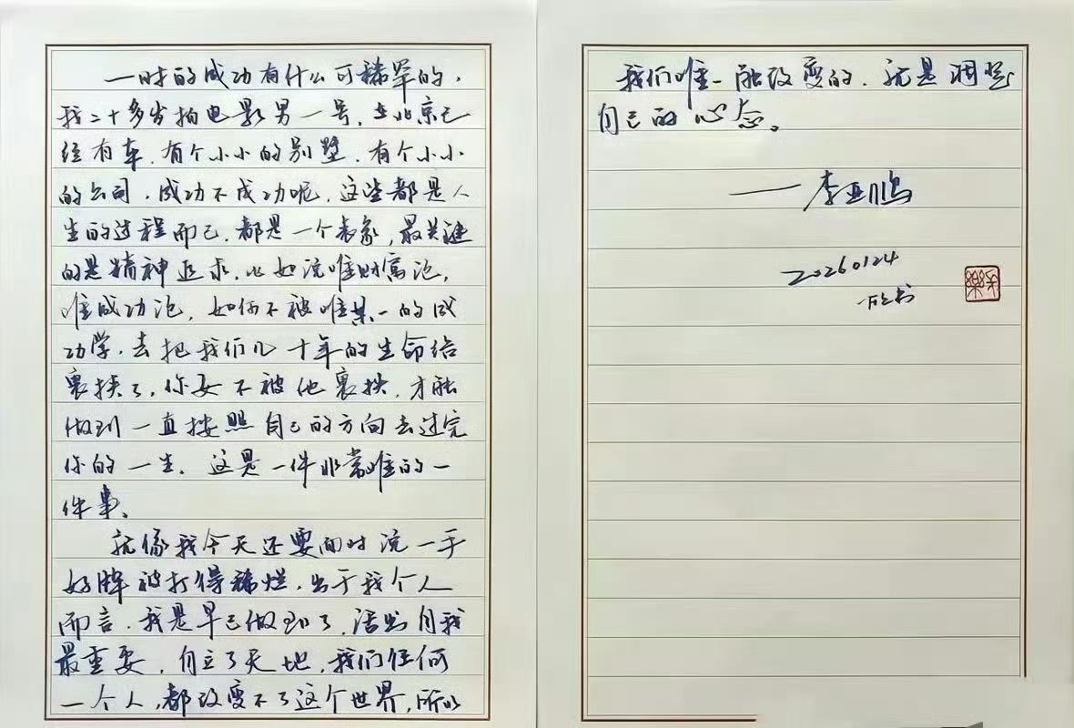 真的是李亚鹏笔迹吗?,如果是的话,那这写字的水平在影视明星中算是非常上乘的了!