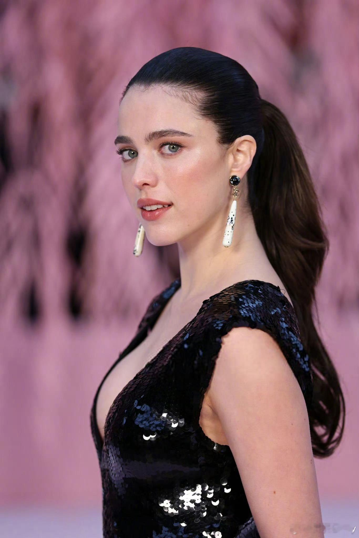 玛格丽特·库里亮相巴黎时装周香奈儿2026春夏高定大秀,一袭定制黑色亮片无袖直筒裙惊艳全场!利落深V勾勒精致锁骨,及踝裙身贴合线条,亮片随步履流转柔光,搭配香奈儿双色拼色高跟鞋与细闪垂坠耳环,黑发白肤衬得矜贵又冷艳。粉色童话秀场中的一抹摩登黑,极简搭配将法式优雅与现代飒气完美融合!巴黎高定时装周 |香奈儿大秀 |大秀直击