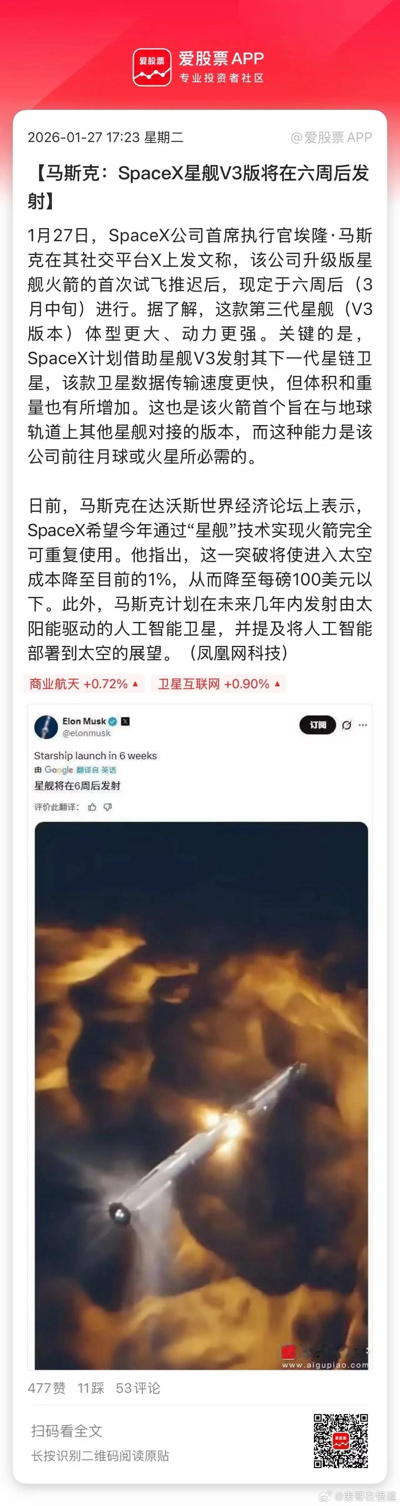 今晚商业航天两大利好,一是马斯克:SpaceX星舰V3版将在六周后发射;二是欧盟也开始紧张了,正式启动各成员国政府卫星通信计划。老马带货不用多说,每次A股都会趁机炒一波。欧洲也启动卫星计划,主要是为了安全,现代社会已经离不开网络通讯了!但爆发战争或者地震等极端情况,卫星通讯的稳定性是比基站好很多,可以做一个备份,甚至以后成为主流!总之,在商业航天竞争上,欧洲是很明显落后的,单靠某一个国家非常难追赶中美,因此必须联合起来一起干。但欧盟IRIS2星座的首批服务将于2029年推出,和咱们差的不是一点点啊。对于商业航天,今年将会是卫星发射大年,卖铲子公司逻辑是很正的,尤其是材料环节。还有就是叠加新逻辑的太空光伏、太空存储,应该没走完的!