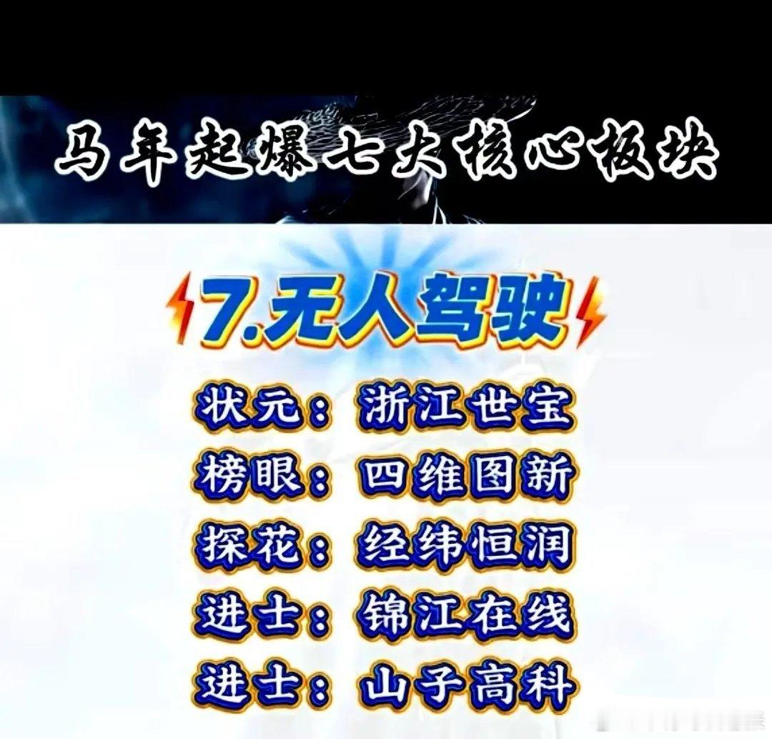 马年起爆七大核心板块。马年起爆七大核心板块。这七大板块之中的人工智能和无人驾驶的热度越来越强,其中浙文互联近期走势一反常态,上下震荡的非常剧烈,心脏不好的还真受不了。而智能驾驶领域的浙江世宝,经过一波凶悍的拉升之后,目前正处于回调整理之中。专注于智能网联与车路云一体化领域的四维图新,公司2025年度业绩成功扭亏为盈,净利润9,000万到1.17亿,同比大幅增长108%~110.70%。