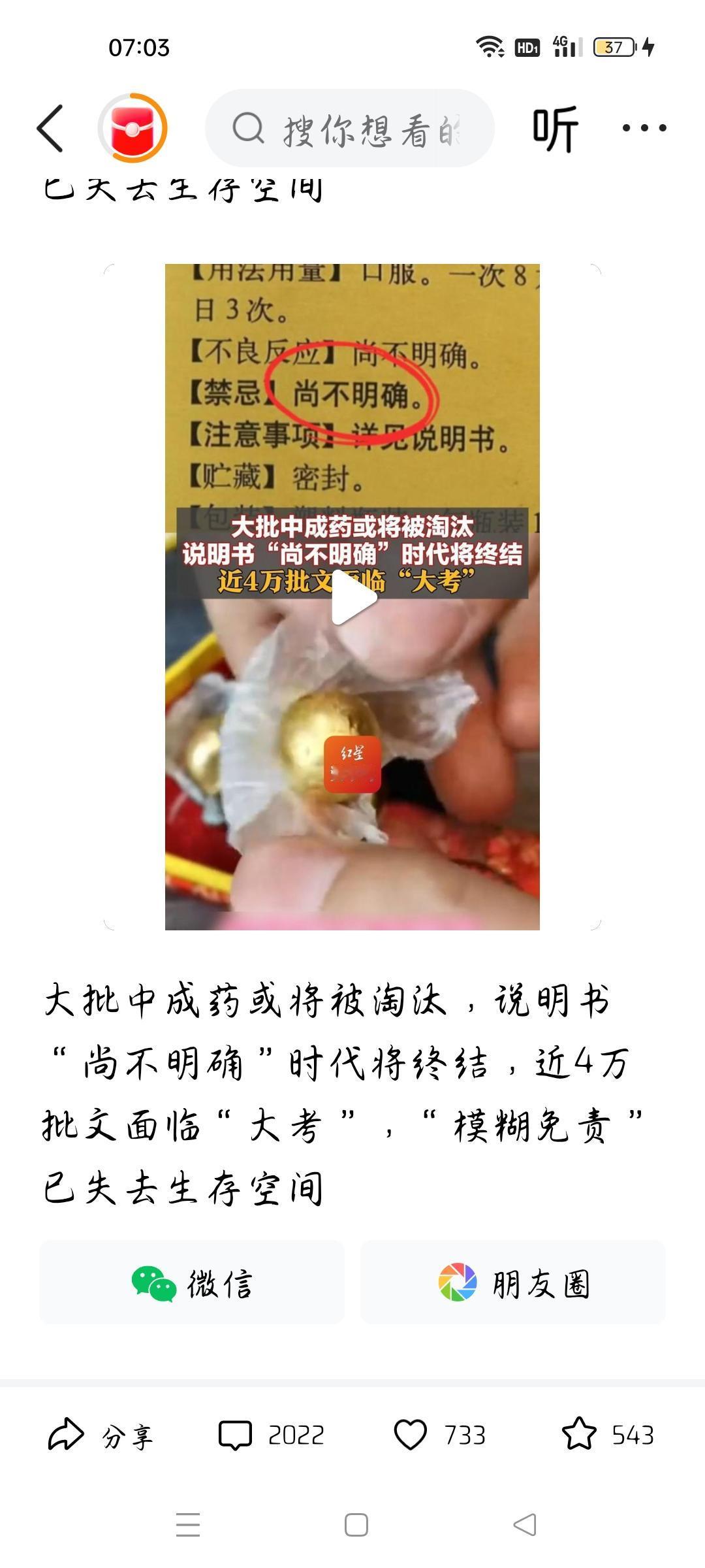 大批中成药将退出市场,我想说 据红星资本局报道,大批中成药将退出市场,说明书“尚不明确"时代将终结,近四万批文面临大考,“模糊免责"已失去生存空间,我想说,大批中成药将被淘汰,是一件好事,因为治病也如扶贫一样,必须精准,对症下药,有些中成药可能吃了不好也不坏,甚至吃得多了,副作用大,治好了这个病,出现了那个病。优胜劣汰,逼迫药企进行科技创新,提高制作技术,为患者提供良药。各位条友觉得呢?