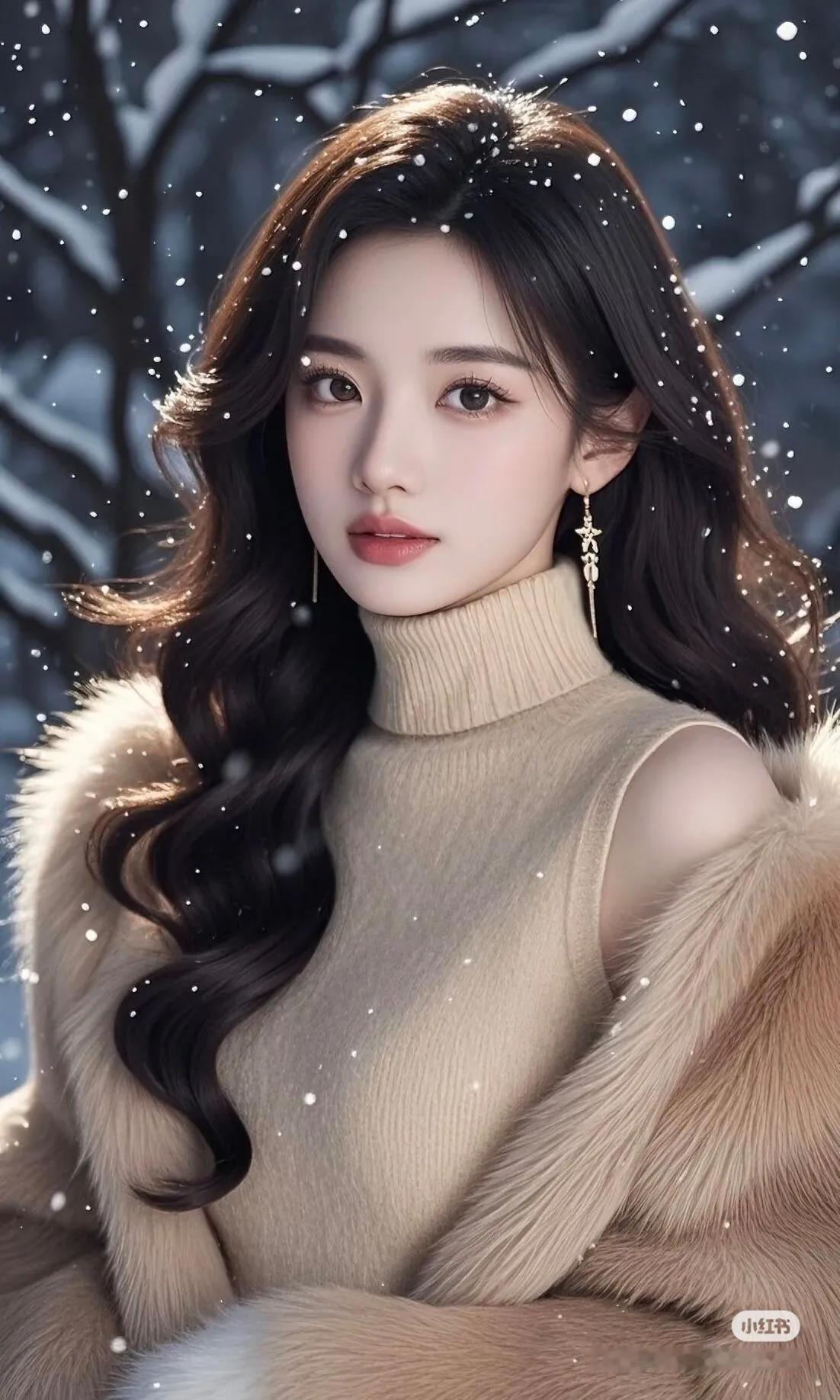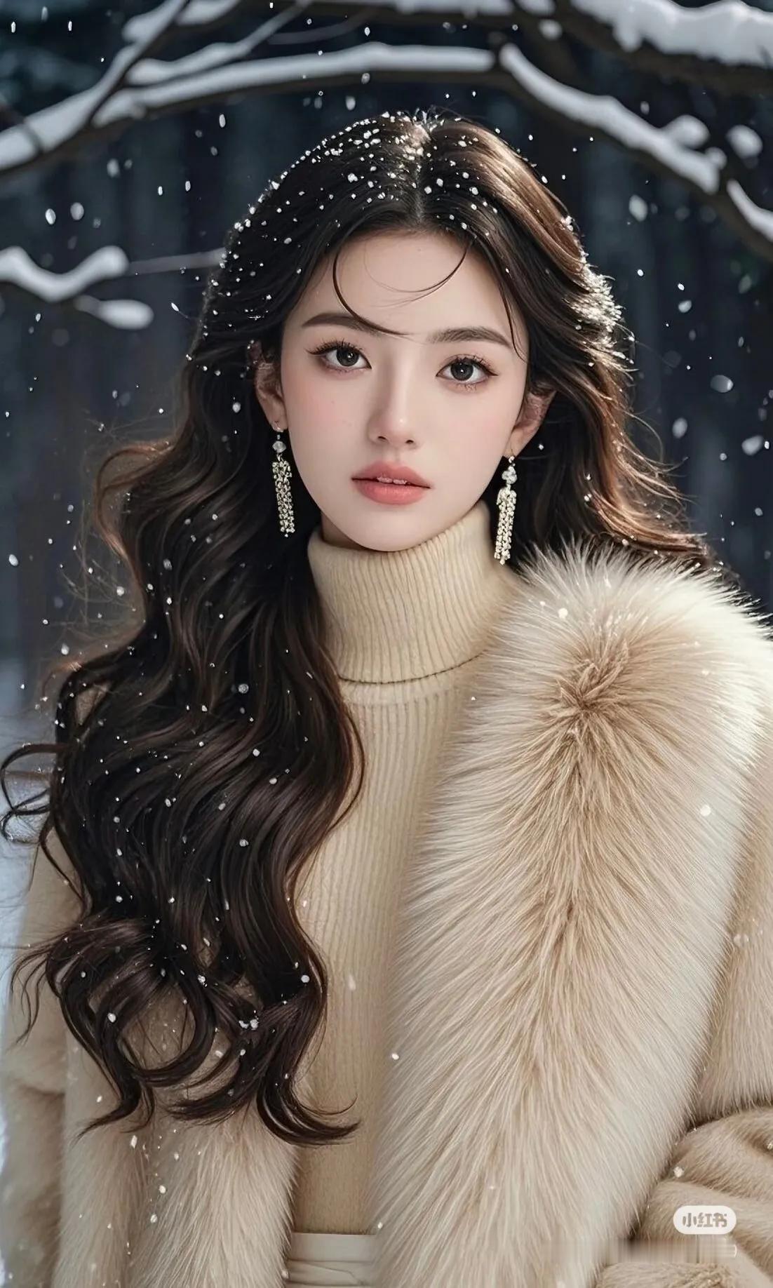 冬日暖阳下的温柔女神,雪中漫步的唯美瞬间。街拍 高清美女