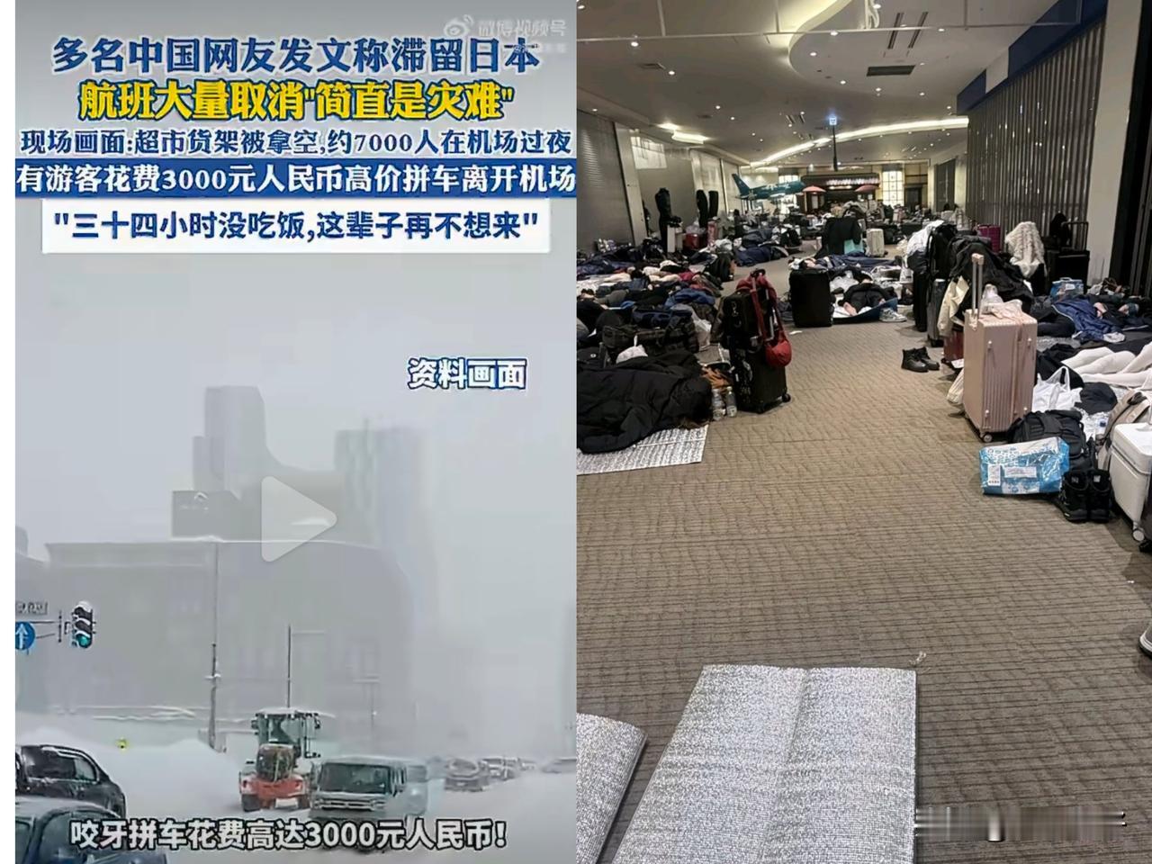 2026年1月25日至26日,日本北海道遭遇数十年未遇的特大暴雪。札幌市48小时降雪量达64厘米,突破1999年3月以来的气象纪录,市区部分区域积雪厚度超过1.05米。暴雪导致地面交通几乎全面瘫痪,铁路、巴士等公共交通中断,城市运行陷入停滞。 新千岁机场单日取消航班达56架次,大量旅客滞留航站楼。由于机场及周边酒店容量饱和,部分旅客不得不在航站楼内过夜,有人躺在行李传送带旁,或用行李箱拼成简易床铺休息。机场内便利店食品被抢购一空,热水与热食供应一度中断。 有多名中国旅客反映,在滞留期间经历了“34小时未进食、40小时未睡觉”的困境。部分人为尽快离开,花费约3000元人民币高价拼车前往其他城市;后续改签的经济舱机票被炒至1.5万元一张且迅速售罄。此外,一些游客因行程严重延误,面临签证逾期风险。 暴雪发生前后,中国驻日本使馆已多次发布安全提醒,建议公民谨慎前往北海道地区。1月26日,使馆再次发出紧急通知,明确提示“春节期间尽量避免前往北海道”,并建议已在当地的公民密切关注天气与交通信息,加强自我保护。 尽管类似的提醒在极端天气前屡次发布,仍有许多旅客按原计划出行,最终陷入困境。有网友在相关报道下留言:“预警其实一直都在强调,但总有人觉得‘不至于那么严重’。” 天灾虽不可控,但对风险的预判与重视,或许能让旅程少一些意外与艰辛。
