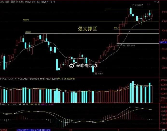 上证指数:高位巨震回踩了4100点支撑,情绪刚好也是走到冰点,然后开始逐步企稳反弹,指数波动依旧不大,但是情绪走的相对极端。短期箱体震荡格局还会延续一小段,双创也是维持箱体震荡,一句话,指数不会大涨,也不会大跌!风险评估:混沌期过渡阶段。扛过去,海阔天空!我的大原则判断不变:大方向坚决看多做多。今日看盘