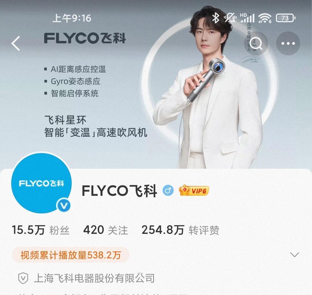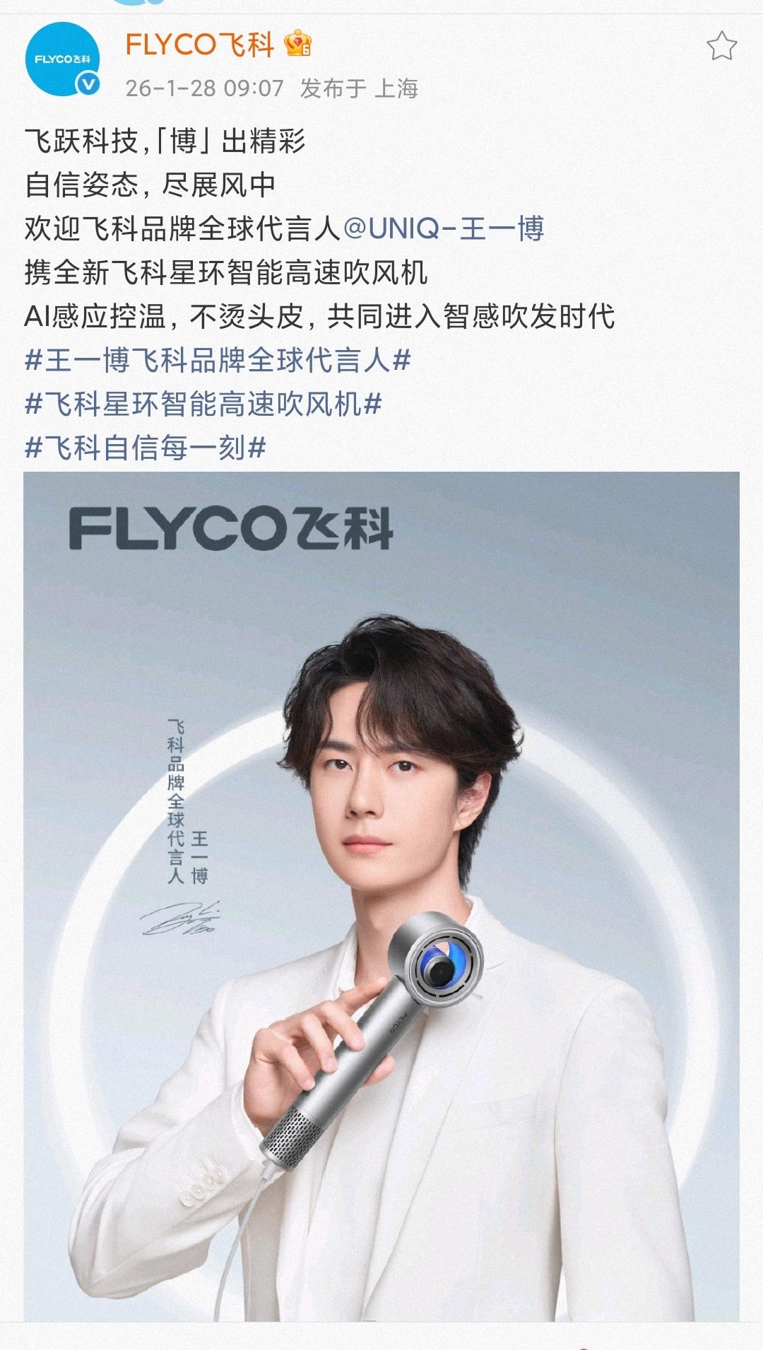 飞跃科技,「博」出精彩——王一博飞科品牌全球代言人[赞]。 王一博新代言正式官宣,又一个高质量品牌加入“高质量啵啵团”[大金牙]。 商务价值一骑绝尘,几年了仍然是内娱可望不可即的神一般的存在,这就是王一博。 王一博