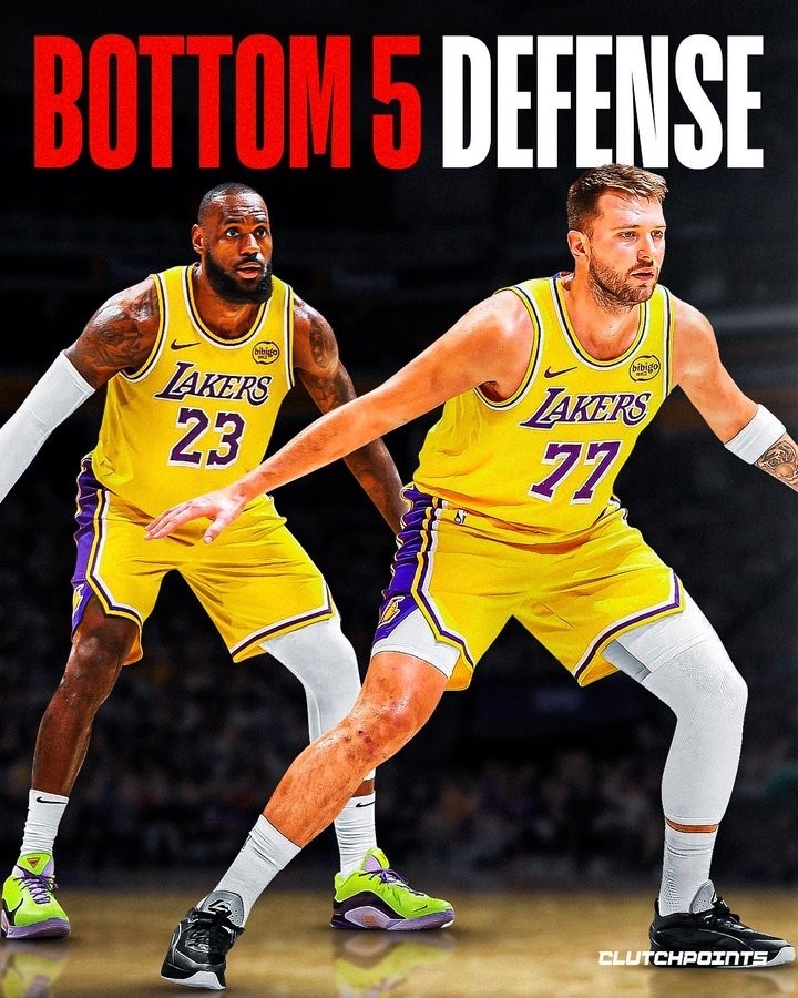 ClutchPoints:本赛季湖人的防守效率117,排名NBA第25位,但他们