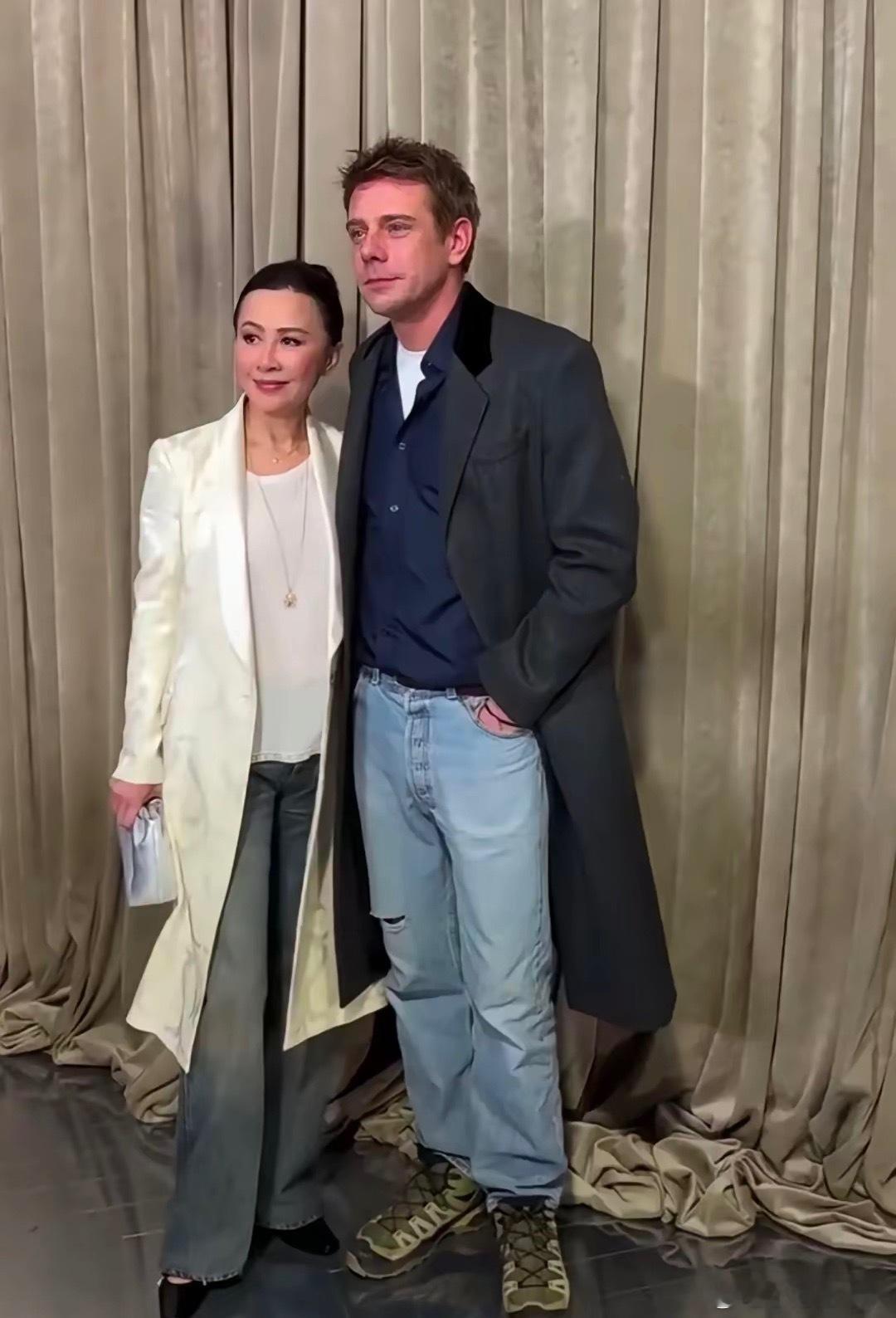 刘嘉玲在时尚界的排面还是挺大的啊,她现身巴黎迪奥看秀,迪奥总监亲自迎接,穿着一件白色缎面长风衣的她,搭配牛仔裤,时尚、端庄又有活力。