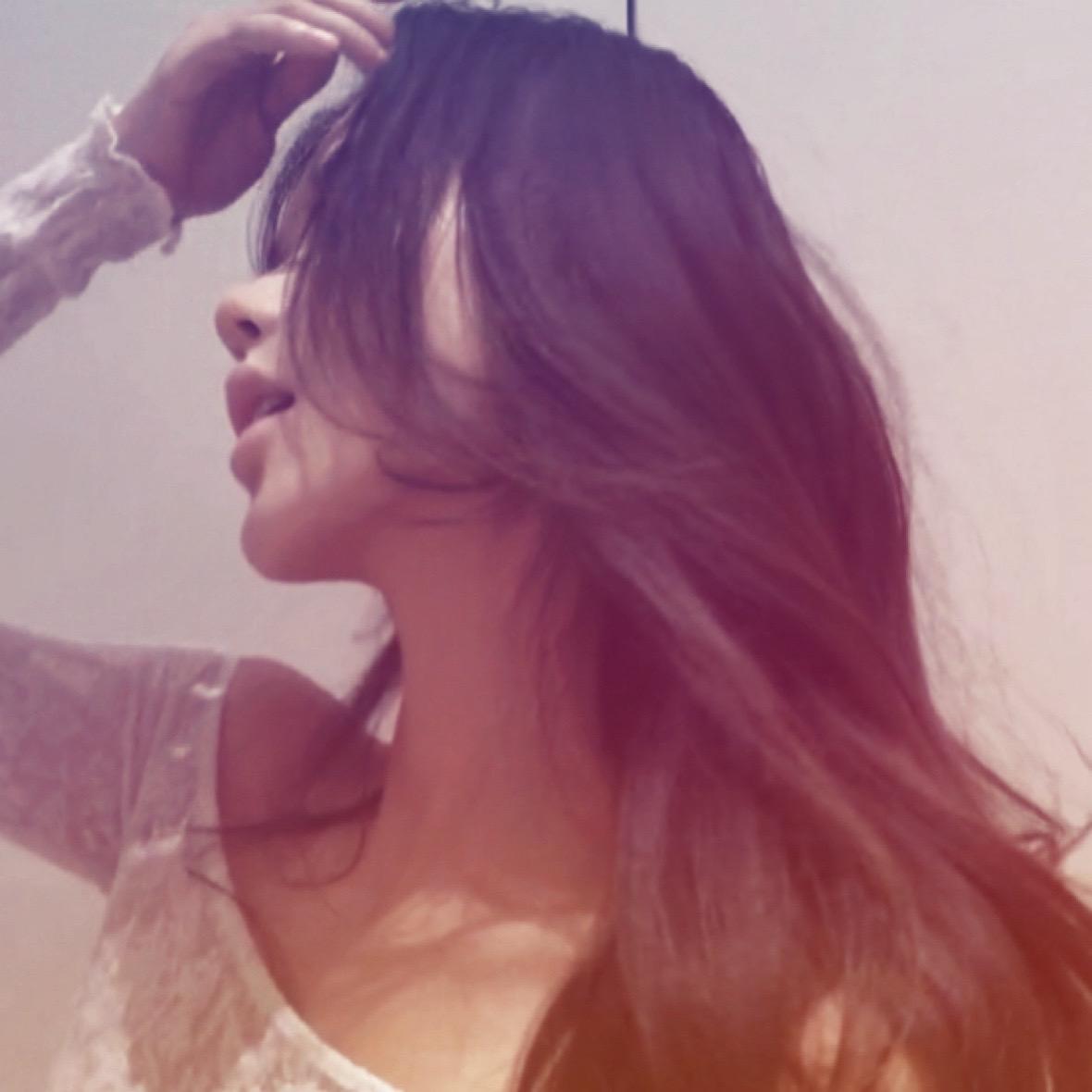 她在粉色碎花床单前站定黑裙与花影织成暧昧的网窗帘滤过的光线是淡蓝的落在她肩