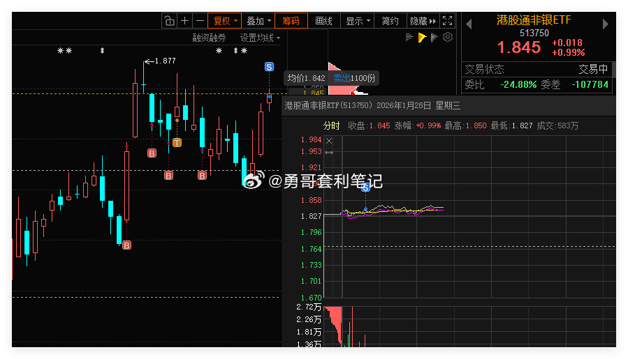 港股通非银ETF借助网格条件单,成功自动成交一网。合理设置网格区间,利用这种交易策略不断优化操作,逐步降低持仓成本。以上仅为个人经验分享,不构成投资建议哦。基金今日看盘金融