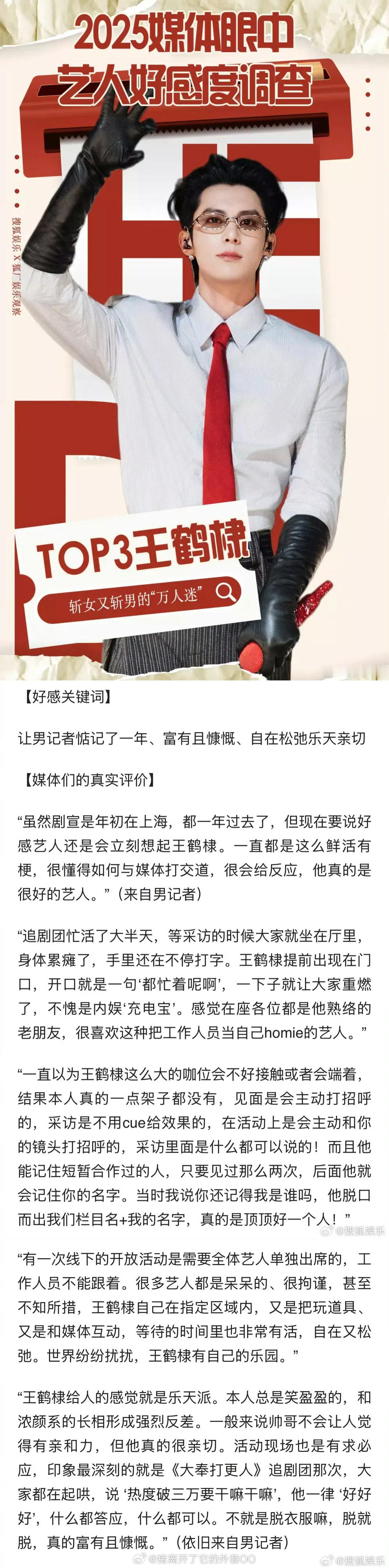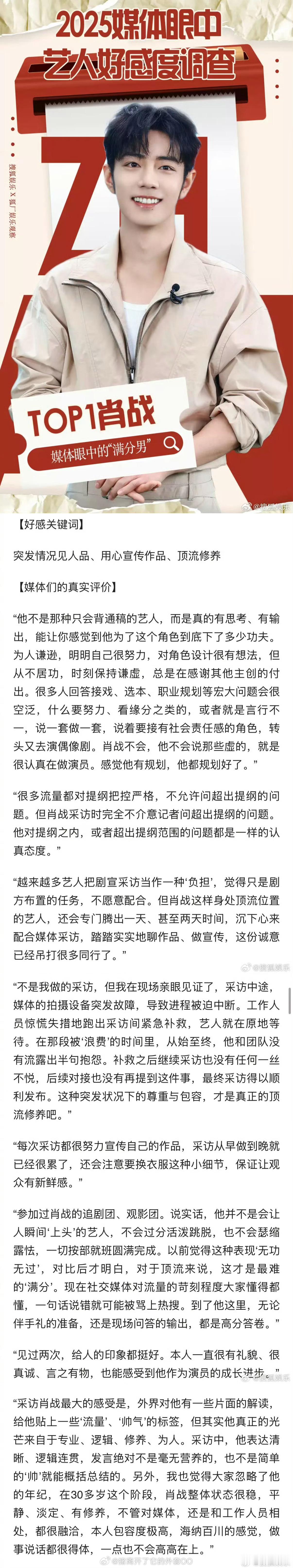 肖战2025媒体好感艺人top1媒体们对肖战的真实夸赞,有思想为人谦逊有礼,专业