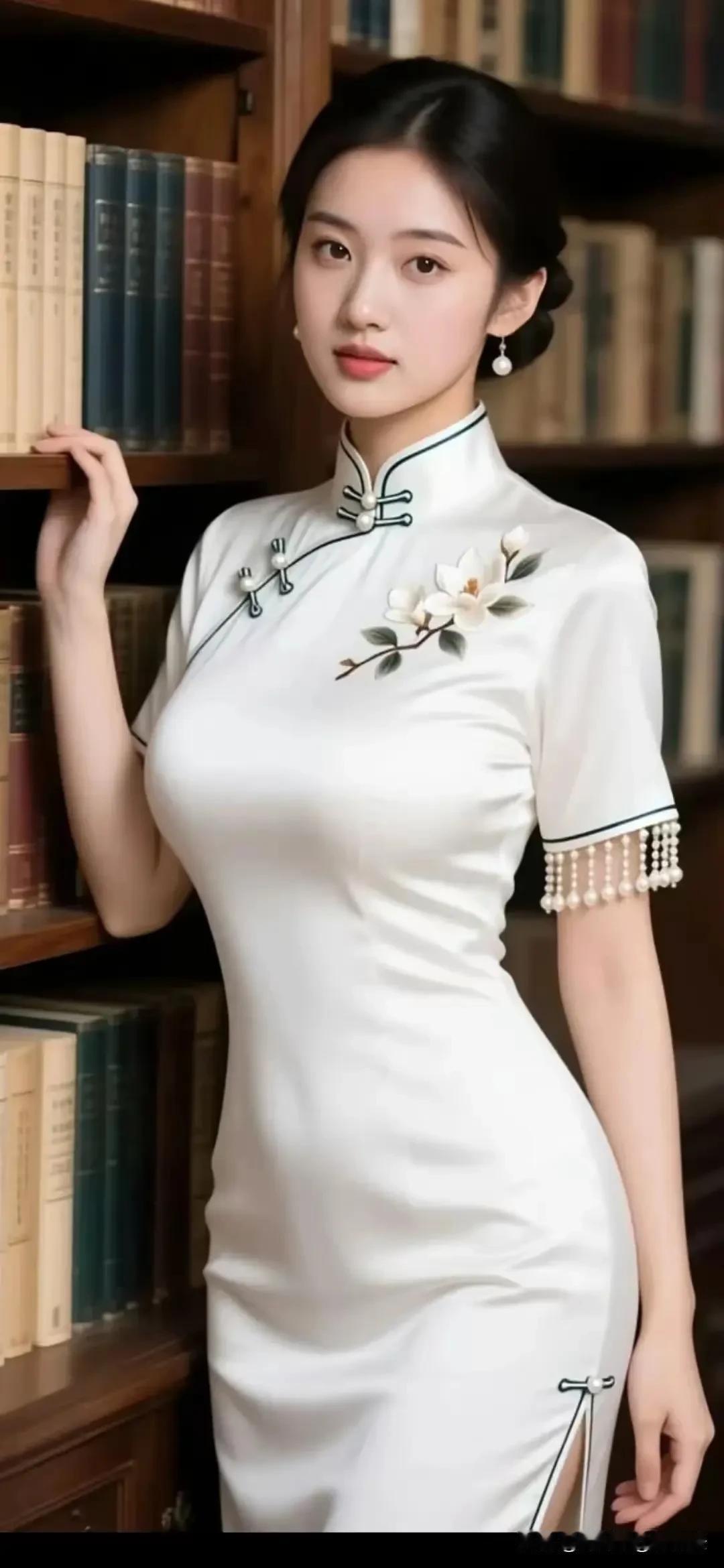 东方旗袍,历史悠久。 百年传承,经久不衰。 中西融合,多元幻彩。 贴身裁剪,尽显风采。 旗袍雅致衬娇容, 白底黑花显风情。