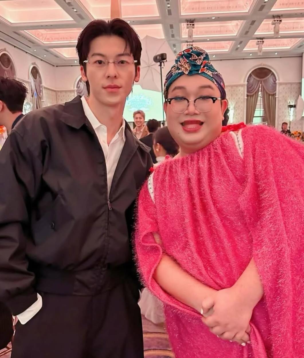 张天爱跟素人合影,胯真的好宽,大宅院似的