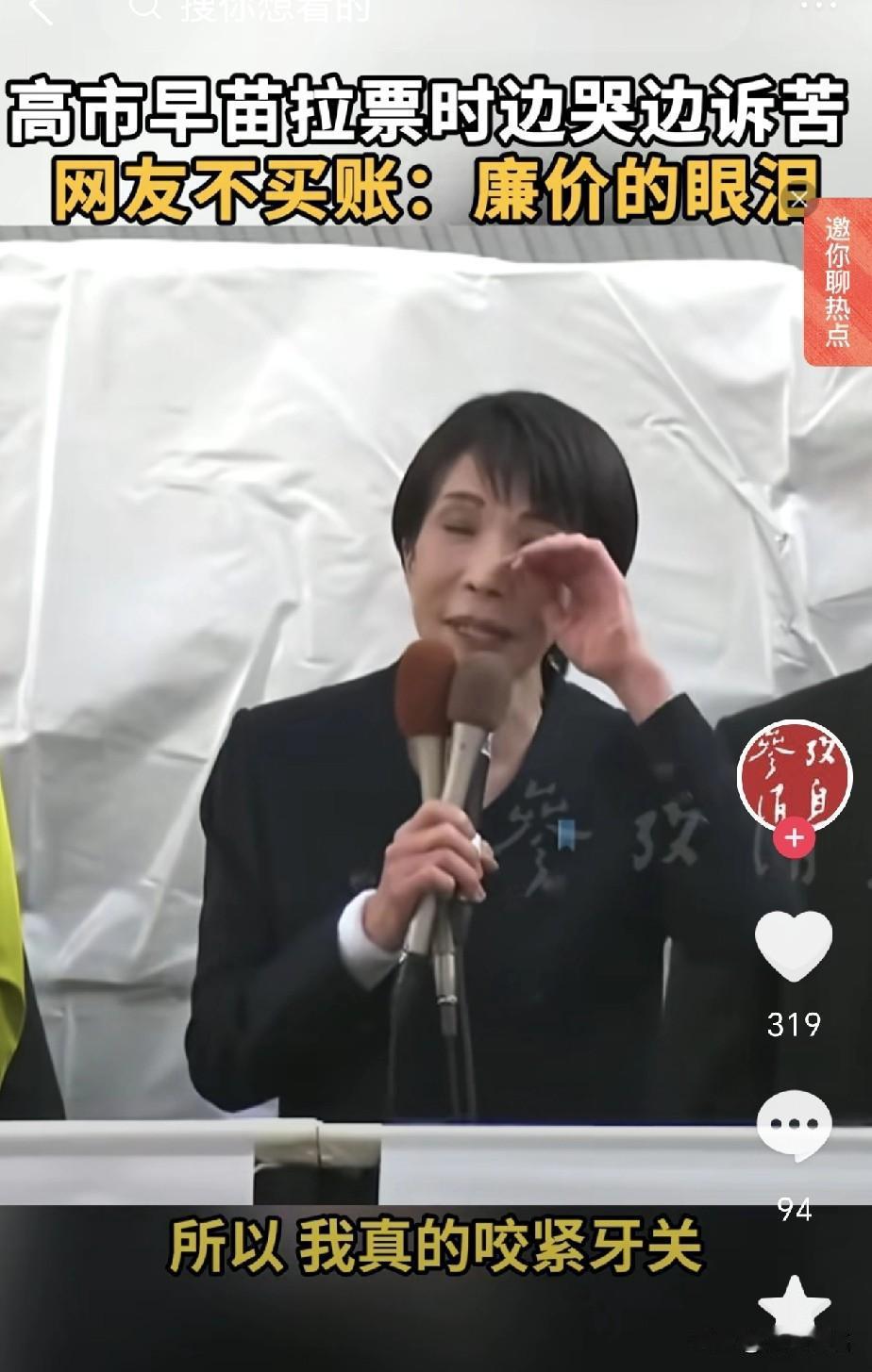 日本大选进入白热化阶段 1月27日,高市早苗流泪演说:“咬牙30多年”才走到首相位置,不是为了当“看守首相”。 她在演讲中把话说得非常直白: 如果自民党 + 日本维新会拿不到国会过半数议席,她将立刻辞去首相职务。 高市强调—— 过去那种靠低头求人、勉强拼凑过半数的政权,根本无法强力执政。 👉 所以这次,她要一个清楚、稳定、能行动的政权机构。 高市要让日本成为印太地区“被仰视的灯塔”,让下一代生活得安全、富裕、有尊严,建设一个“能让国民挺起胸膛”的日本。 她的结尾只有一句话: “不去挑战的国家,没有未来。”