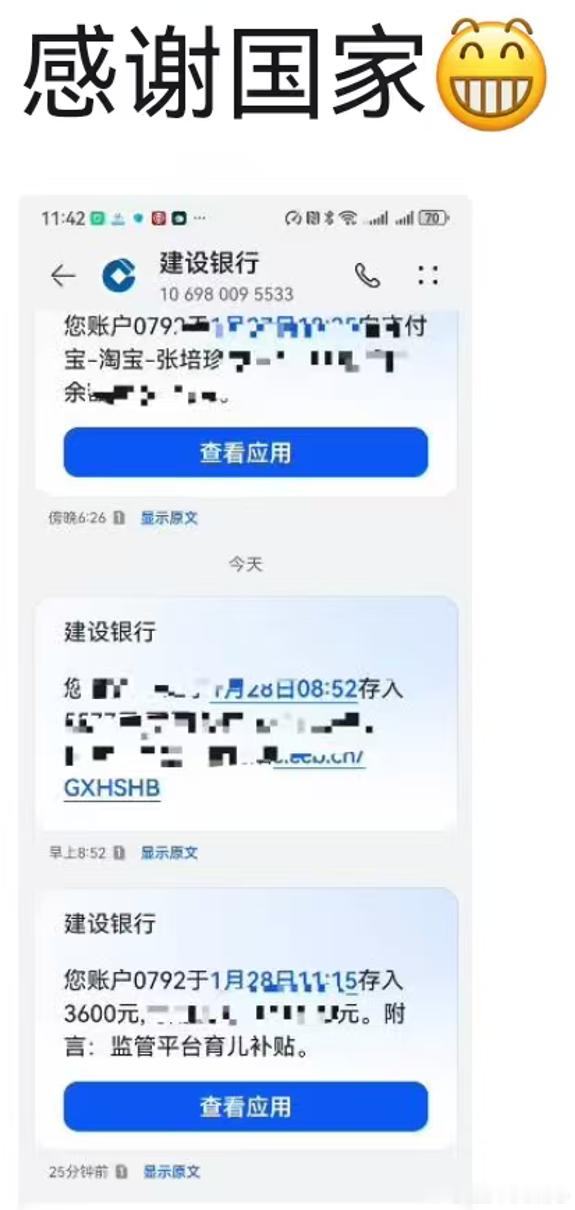有人的育儿补贴到账了