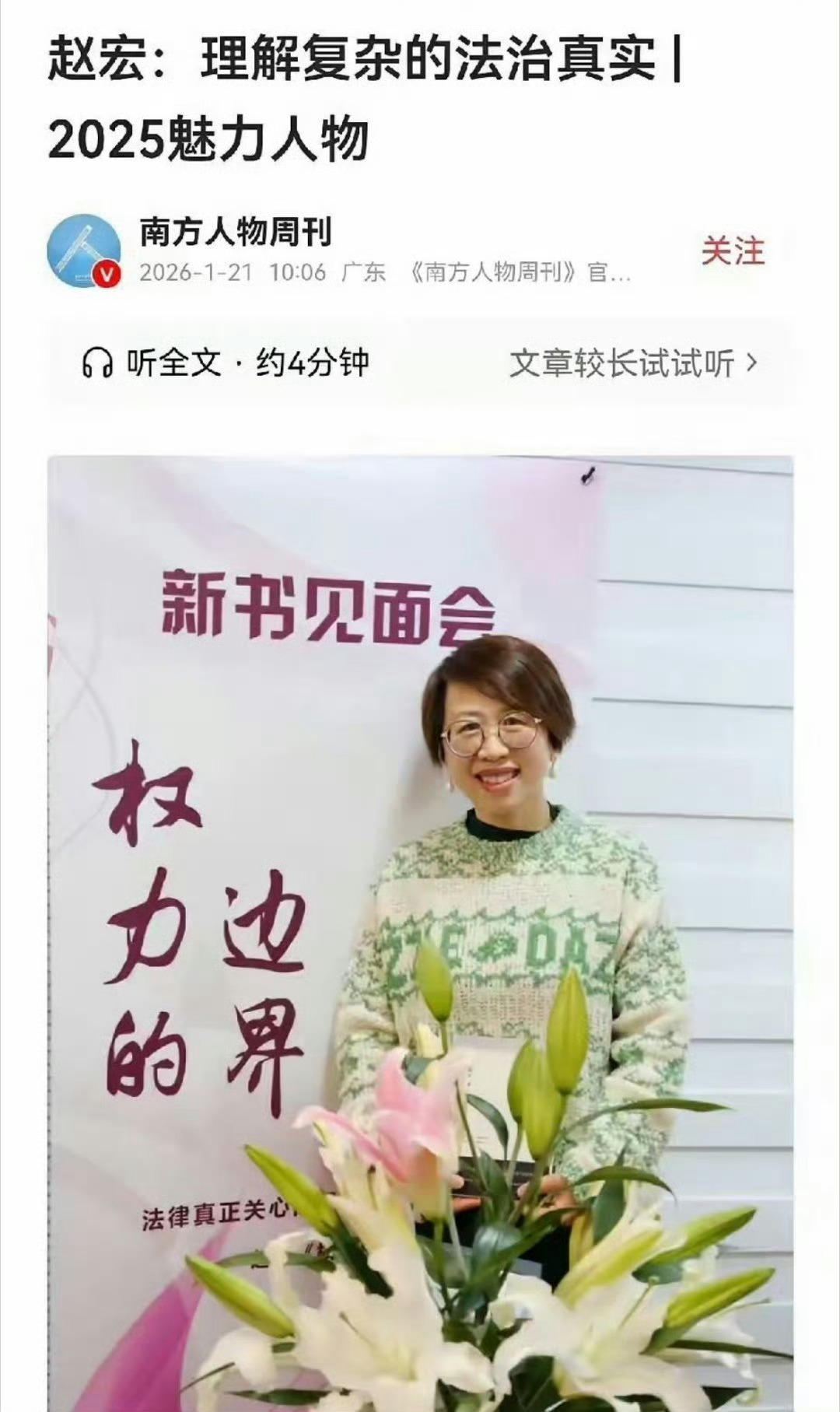 赵宏教授被南方人物周刊评选为2025年魅力人物。