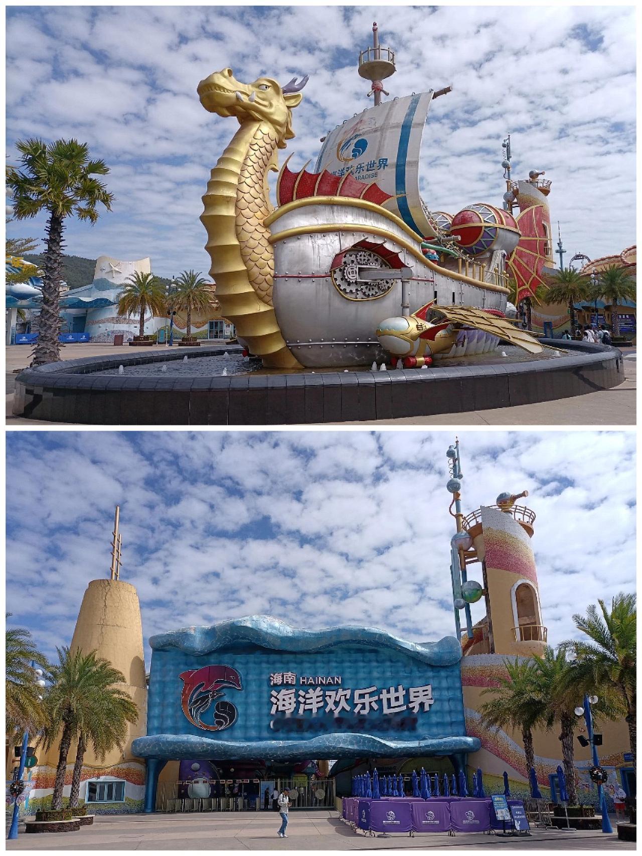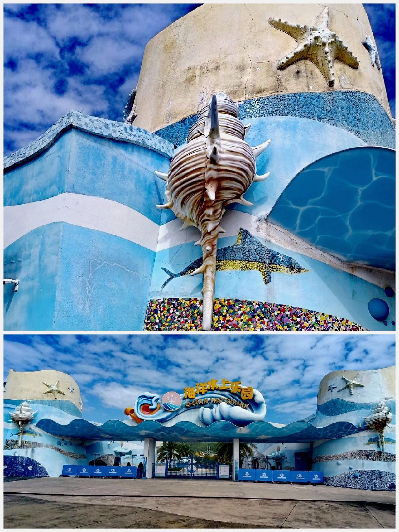 头一次赶海,就在陵水县岭仔村赶海点(图1-4)。好家伙,身穿渔民的深水工装,带着深水钳子,赶海了!沿着滩涂慢慢走向海边,这里风平浪静,没有潮汐的海浪,一路淌过海水,拾着小贝螺 ,太高兴了,乐此不疲,看近2小时的成果(图5);临走时,借我们工装和工具的老板娘,还送给我们一只绿色的小海星和一颗小海螺,真开心。 余情未了,来到了富力海洋主题公园,美丽的景色吸引了我们(图6)。海洋水上乐园的大门太好看了,左边的超大海螺(图7)美极了;这条龙船和欢乐世界大门如童话世界(图8);右侧看过去,以为是神话中的城堡(图9),也留下来放大细看。 香水湾滨海公路网红点(图10-13),也必须打卡一下,可惜正在建造中;不过从公路侧面望过去,瑰丽的海景同样令人心动。 陵水 赶海 赶海拾贝 公园