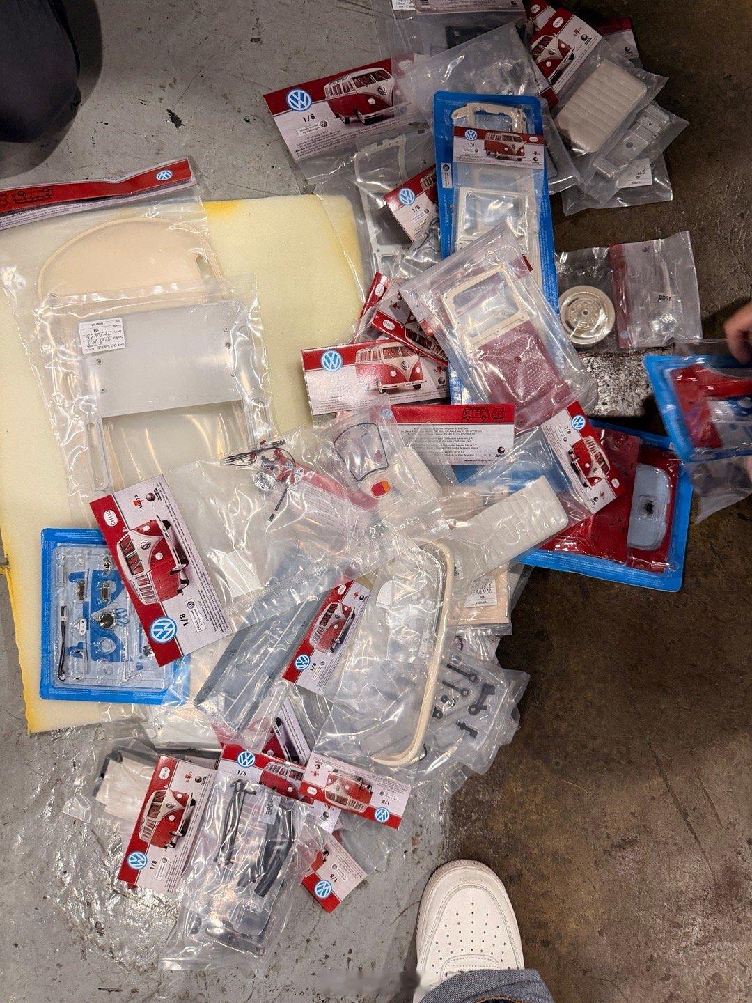 开71去香港找老马,他说要试下我这部车,看到他喜欢的越野车,马大立先生的眼睛,会发光试完车,礼尚往来,大哥又拿了一大箱子宝贝出来诱惑我 我惊到了,这可是好东西,是十几年前DeAgostini/Altaya出品的,1:8比例大众T1 Samba Bus拼装金属模型分件包,属于订阅式拼装模型系列,也就是说,一份零件,就是一期杂志,要存齐全套,要一丝不漏买齐120期杂志收齐这些零件以后,得自己拼,上螺丝,走线路,连发动机都是散的,基本上一部真车有啥可以拆吗零件,这套就散成啥样。还有还有,老马说,安装说明书找不到了 “好简单嗟,真车系点,距就系点,你识真车构造,就识得组装,使鬼说明书咩……”人都颠,但又好想要,点算