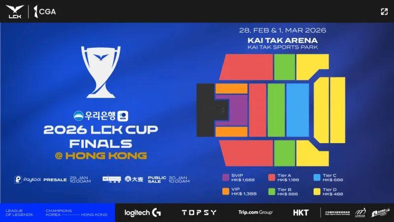 近日LCK官方宣布LCK杯败者组决赛、总决赛将分别于2月28日、3月1日在香港启德体育园举办!这也是LCK自2012年创办以来,首次于海外举办比赛。此外本次LCK杯决赛票价公布,票价为488(435RMB)、688(614RMB)、888(792RMB)、1188(1060RMB)、1388(1238RMB)、1688(1506RMB)。LCK杯总决赛落地香港2026LCK杯决赛票价 英雄联盟