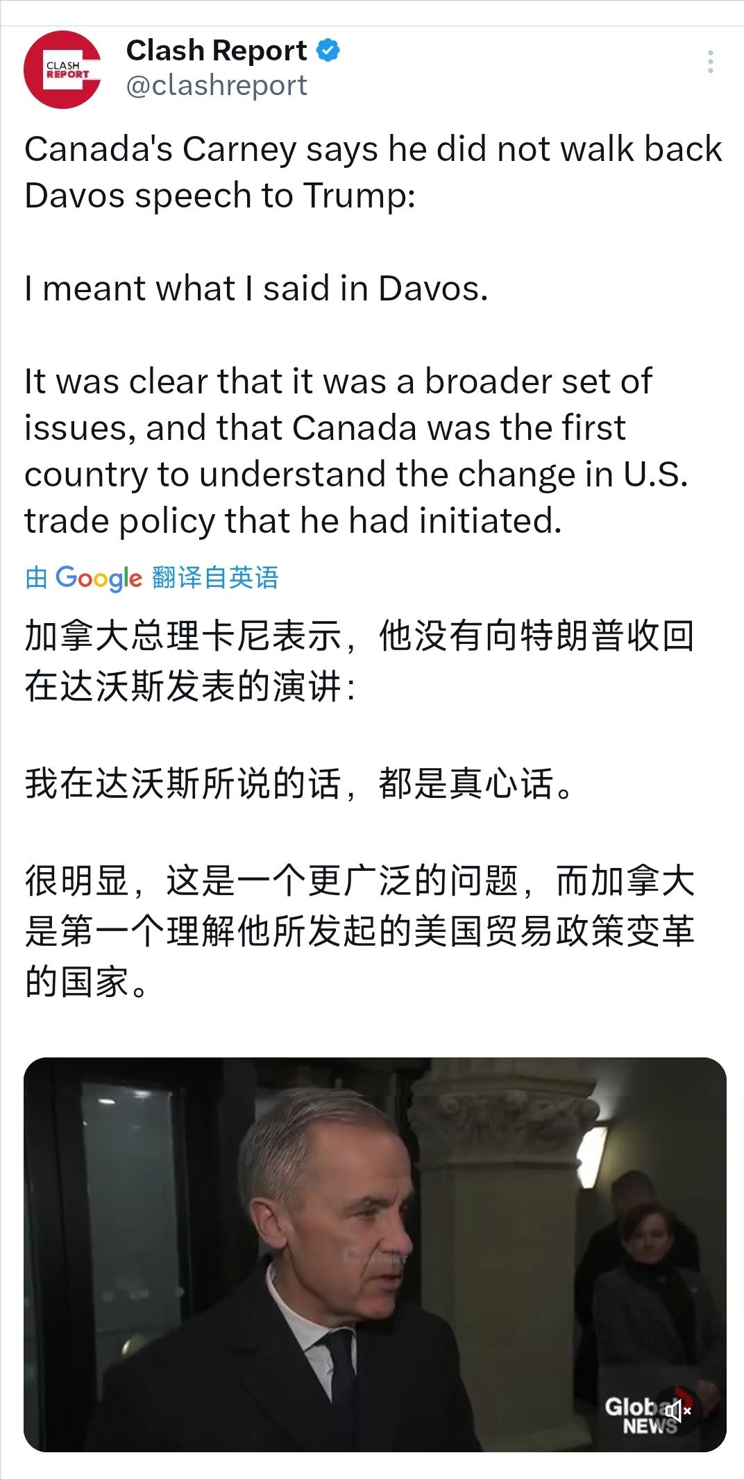 特朗普这次算是踢到了钢板上!北京时间1月28日,加拿大总理卡尼直接摊牌,明确表示自己没有向特朗普收回在达沃斯发表的演讲。   这下好了,不仅没给美国留面子,还顺带把特朗普政府的脸打得啪啪响,这硬气程度,把习惯了跟在美国面的盟友们都看傻了。   事情的起因还得从几天前的达沃斯论坛说起,卡尼当时可是当着全球政商大佬的面,把美国主导的“旧秩序”批得体无完肤。   他在台上直言不讳地说现在的世界是“强者为所欲为,弱者逆来顺受”,还呼吁中等国家赶紧抱团,不然“不上桌,就会上菜单”。   这话里话外,谁都能听出来是在点谁的名。现场那掌声雷动,估计台下的美国代表团脸都绿了。   特朗普哪受得了这个气?当天就在达沃斯回怼,说加拿大能存在全靠美国罩着,还警告卡尼下次说话前过过脑子。   这还不算完,特朗普反手就撤回了对卡尼加入“和平委员会”的邀请,甚至在社交媒体上放狠话,威胁要对加拿大商品加征100%的关税。   这套组合拳要是搁在以前,加拿大总理早就求饶了,可这次卡尼偏偏不信邪。美国财长贝森特刚放风说卡尼已经认怂“收回”了言论,卡尼就出来辟谣。   他在声明里说得清清楚楚,跟特朗普通话那30分钟里,他不仅没道歉,还告诉对方:“我在达沃斯说的每一个字,都是真心话。”   他还特意补了一刀,说加拿大才是第一个真正看懂美国贸易政策变革的国家。   卡尼之所以敢这么硬,底气其实也备足了,他手里握着刚从东方带回来的“定心丸”。   就在半个月前,卡尼顶着美国的压力访问了中国,这趟行程可是实打实的“破冰之旅”。不仅一口气签了8份合作文件,连《中加经贸合作路线图》都敲定了。 最让加拿大农民乐开花的是,中国同意把油菜籽的关税降下来,电动汽车的关税也给了优惠待遇。这对于正被美国贸易大棒威胁的加拿大经济来说,简直就是雪中送炭。   有了这条后路,卡尼自然不用再看美国的脸色行事。   面对特朗普的关税威胁,卡尼也没闲着,直接在国内号召民众“购买国货”。他在视频里说得那叫一个悲壮:“我们管不了别人发疯,但我们可以做自己最好的客户。”   这招“内循环”虽然是被逼无奈,但也实打实地激起了加拿大人的民族情绪。   更有意思的是,加拿大军方最近搞了一次兵推,假想敌居然是南边那个“老大哥”。   自从上个世纪以来,加拿大军队第一次模拟美军从南部入侵的场景。这种把“最亲密盟友”列为潜在威胁的操作,在西方阵营里简直是破天荒头一遭。   其实卡尼心里也清楚,今年7月《美墨加协定》就要搞六年期审查了,这时候要是示弱,到时候谈判桌上就只能任人宰割。   特朗普现在的策略很明显,就是想在审查前把加拿大彻底打服,好在谈判里漫天要价。   卡尼这一波硬刚,其实是在为即将到来的谈判积攒筹码。他很清楚,像加拿大这样的中等国家,如果一味地当美国的附庸,最后只会被榨干吃净。   反观美国这边,估计也是没想到这回碰上了个硬茬。   特朗普习惯了用关税大棒吓唬人,以前这招对付特鲁多或许管用,但对付金融家出身、精于算计的卡尼,显然是失灵了。   卡尼这套“抗美”的策略,虽然走得惊险,但目前来看效果显著,至少让美国知道,加拿大不再是那个召之即来挥之即去的“第51个州”了。   现在的局势很微妙,美国手里虽然握着关税这张王牌,但也不敢轻易打出来。   毕竟美加两国的经济捆绑太深了,真要搞全面贸易战,美国那边的汽车产业链也得瘫痪一半。卡尼就是看准了这一点,才敢在达沃斯那种场合公然叫板。   这场博弈才刚刚开始,7月份的协定审查才是真正的决战时刻。   不过有一点是肯定的,那个唯美国马首是瞻的加拿大已经一去不复返了。卡尼今天的表态,不仅仅是一次简单的外交澄清,更像是加拿大独立外交政策的一篇“檄文”。