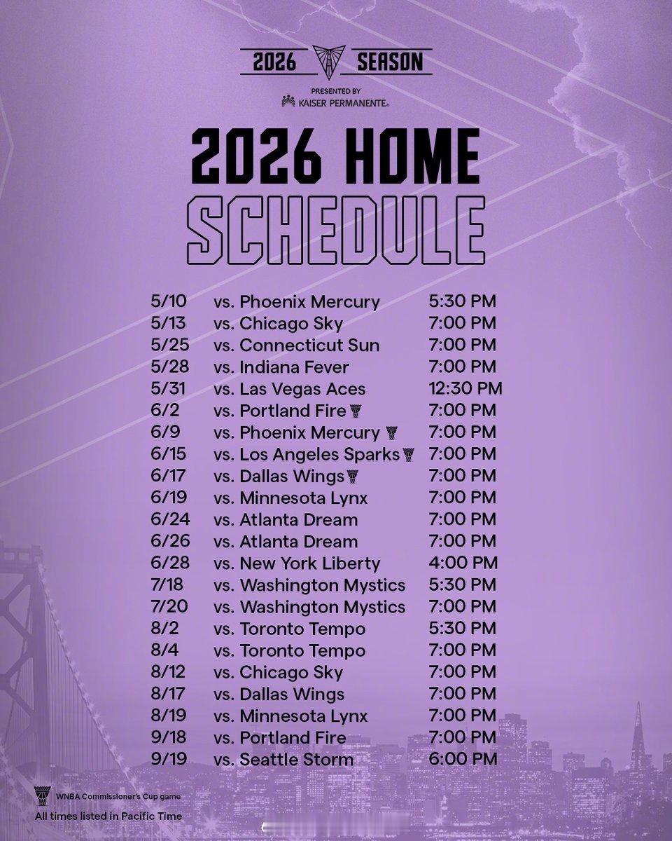 金州瓦尔基里2026赛季赛程正式出炉🔥这个盛夏,和我们一起为瓦尔基里加油吧! cr:金州勇士