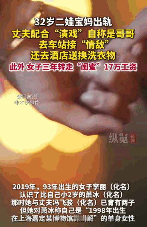 “太荒唐了!”上海,一女子婚后生下双胞胎儿子后出轨,每年和小自己2岁的情人在酒店约会三次,丈夫不但知道,还以女子“哥哥”的身份,开车去车站接情敌,去酒店给女子送换洗衣服,情人5年内给女子转账55万元,还给她贷款买的车还月供,却不知道“大舅哥”其实就是女子丈夫,丈夫为啥愿意甘愿戴绿帽子?他一番话惊呆众人。 2019年底,在外工作的萧冰,在社交平台上认识了李丽。 李丽张口就编了一套完美人设,说自己是98年的,在上海嘉定某博物馆做讲解,还是单身,家庭条件也十分优渥。 比李丽小两岁的萧冰,很快就动了真心。即便两人是异地恋,他也毫无保留地投入。 萧冰每月都会把一万块工资全转给李丽,让她安排两人的开销。每年还会专门坐高铁去上海两三次,和李丽在酒店约会。 最让他暖心的是,每次到上海,李丽的“哥哥”都会开车来车站接他。 偶尔李丽忘带换洗衣物,这位“哥哥”还会送到酒店,叮嘱他多照顾丢三落四的妹妹。 萧冰对这位热情的“大舅哥”深信不疑,三人偶尔一起吃饭,相谈甚欢,他从没怀疑过对方身份。 李丽也很懂拿捏人心,偶尔转回几百上千给萧冰,制造双向付出的假象。 有时候李丽提分手,萧冰甚至会哭闹下跪挽留。五年时间里,他累计给李丽转了55万,还主动承担她车贷的月供。 可他不知道,自己掏心掏肺对待的一切全是假的。 所谓的98后单身女友,实际是1993年出生,2018年就和“大舅哥”冯飞骏结了婚,还生了一对双胞胎儿子。 冯飞骏对妻子的骗局一清二楚,他和李丽的感情早被常年争吵磨没了。 之所以配合演戏,不过是想维持一个有妈妈的家庭空壳,只要李丽每天回家,孩子有妈妈叫就行。 靠着冯飞骏的默契配合,李丽把骗局演得天衣无缝,贪心却让她愈发肆无忌惮。 2021年,李丽在嘉定一家工厂做前台,认识了同厂的李佳梦。 李佳梦性子单纯,两人很快成了无话不谈的闺蜜。 摸清对方没防备心后,李丽谎称自己懂理财,能帮钱生钱。 李佳梦全然相信,直接把支付宝账号和密码告诉了她。 从2021到2023年底,李丽从不敢大额转账。 每次只转几百到几千块,靠着拆分金额,一点点挪走了李佳梦17万多积蓄。 2024年初,房东催缴房租,李佳梦查账时才发现余额只剩10块。 她慌忙告诉丈夫,两人当即报警。警方顺着资金流向核查,很快就查到了萧冰。 这起藏了五年、牵扯两人的双重骗局,终于被彻底撕开。 当民警把真相告诉萧冰时,他瞬间垮了下来。五年真心和五十多万积蓄,全成了笑话。 李佳梦得知是闺蜜偷走积蓄,也陷入巨大痛苦,这份虚假友谊让她深受打击。 经查实,李丽骗来的72万,全花在了网购、吃喝和还网贷上。 冯飞骏虽没直接拿钱,但监控、快递记录都能证明他知情并提供帮助。 按照法律规定,他被认定为诈骗共犯,并非不知情就无需担责。 目前上海嘉定区检察院已对两人提起公诉,李丽数罪并罚,将面临十三年及以上刑期。 一场贪心主导的骗局,牵扯出几段扭曲的关系,最后没有一个赢家。 这里也给大家提个醒,网上交友务必核实身份,涉及金钱往来一定要谨慎。 而闺蜜间涉及理财、账号密码等事宜,更要多留个心眼,别让信任成了被伤害的漏洞。 有人说冯飞骏的妥协很可悲,为了孩子牺牲底线反而酿成大错。 也有网友觉得萧冰太恋爱脑,五年不核实身份才给了骗子可乘之机。 你怎么看待这起荒唐的骗局?如果是你,会提前核实对方身份吗?