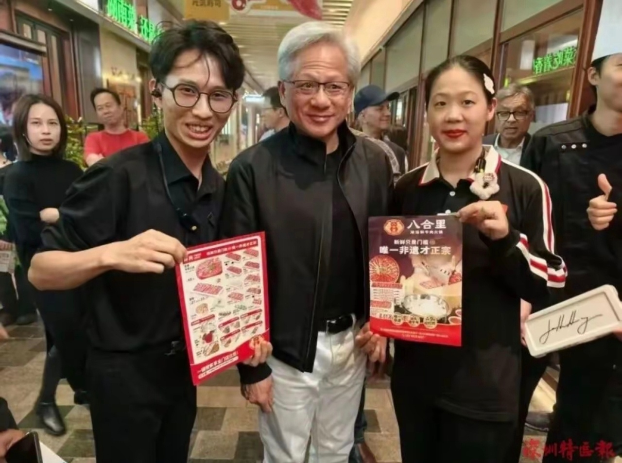 黄仁勋现身深圳吃牛肉火锅一点架子没有,与民同乐的感觉,他可是身价千亿美元,为了来卖货也是够拼的 黄仁勋在深圳吃火锅店家给打了折
