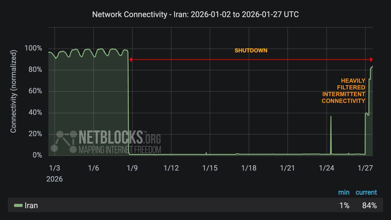 伊朗的互联网在经历了近三周的全面停止后,开始逐步恢复正常。海外新鲜事热点现场国际