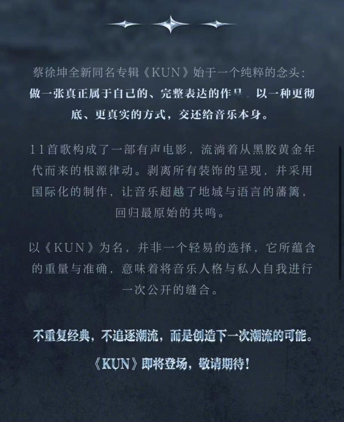 蔡徐坤新专预告电影感 被预告中那种“向死而生”的哲学感击中了。蔡徐坤在冰雪中挣扎前行的身影,充满了视觉隐喻和情感张力。这不仅是新歌的预热,更是一次严肃的艺术表达,让2月6日的到来显得格外郑重。