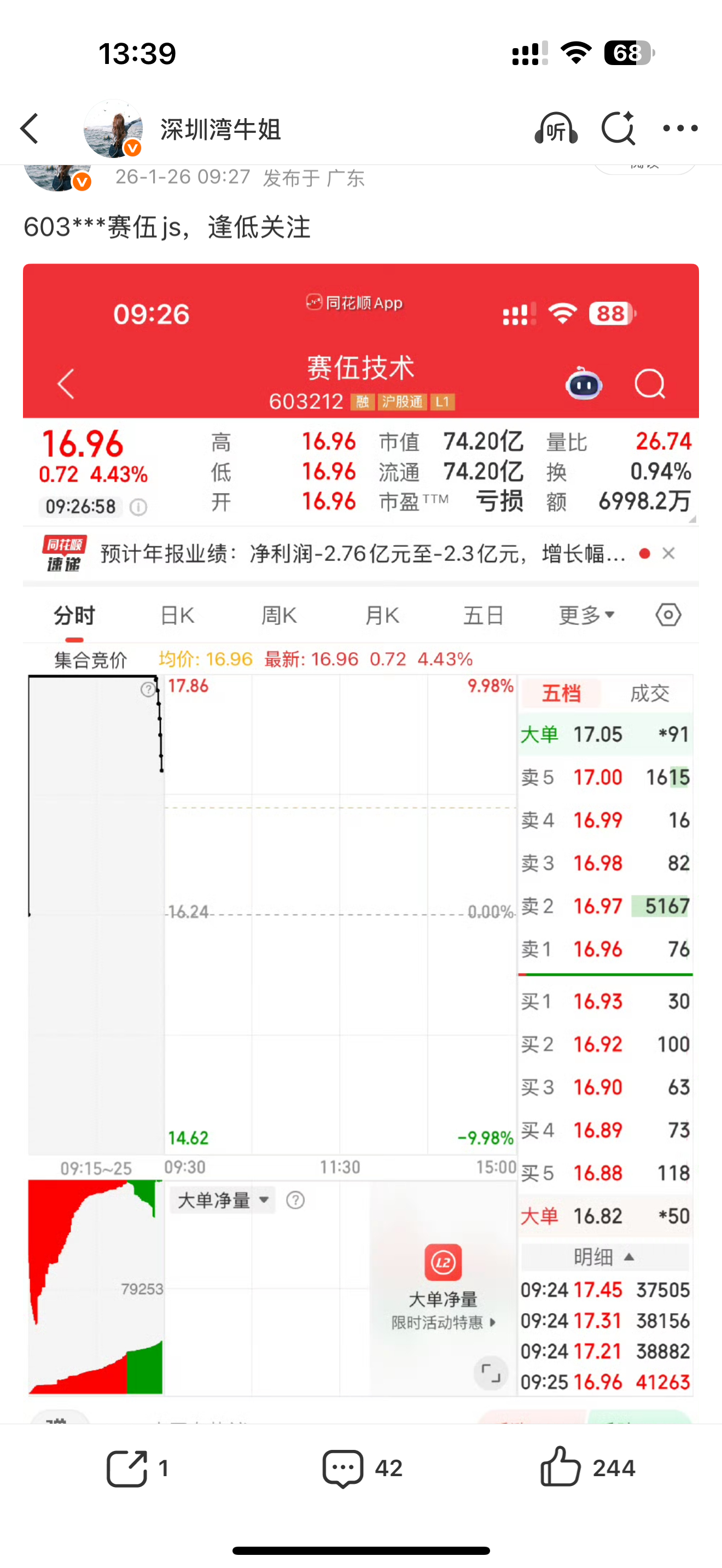 给力,603212赛伍技术直线冲击涨停,大肉到手自行把握,牛姐那么给力就看你们的