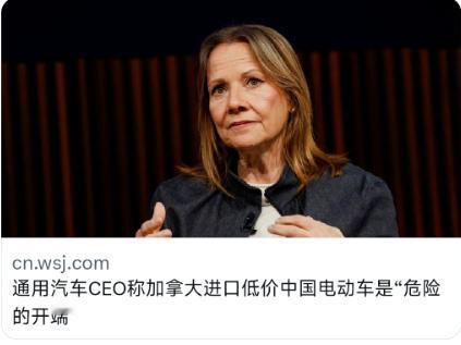 通用汽车的CEO说了一句话很可笑,说如果中国的电动汽车进入加拿大的市场,那么会变成十分危险的局面。 其实他的意思就是加拿大不应该购买中国的汽车,应该购买通用的汽车,因为想不出理由所以说了一个为了安全。 其实现在危险的不是加拿大,正是像美国通用这种汽车,在国际市场上他们完全没办法跟中国的汽车较量。 当加拿大放开对中国汽车的进口限制,没有关税的保护自己将很难发展,其实这就是美国企业的一些通病,面对中国的追赶第一反应不是怎么调整,而是继续吃老本,等待政府的贸易保护,最后等待他们的只有灭亡。 我们外交部也表示过中加贸易不针对第三方,他们完全就是没事找事,自己不行怪别人太强。 不知道大家有什么看法,评论区聊聊。