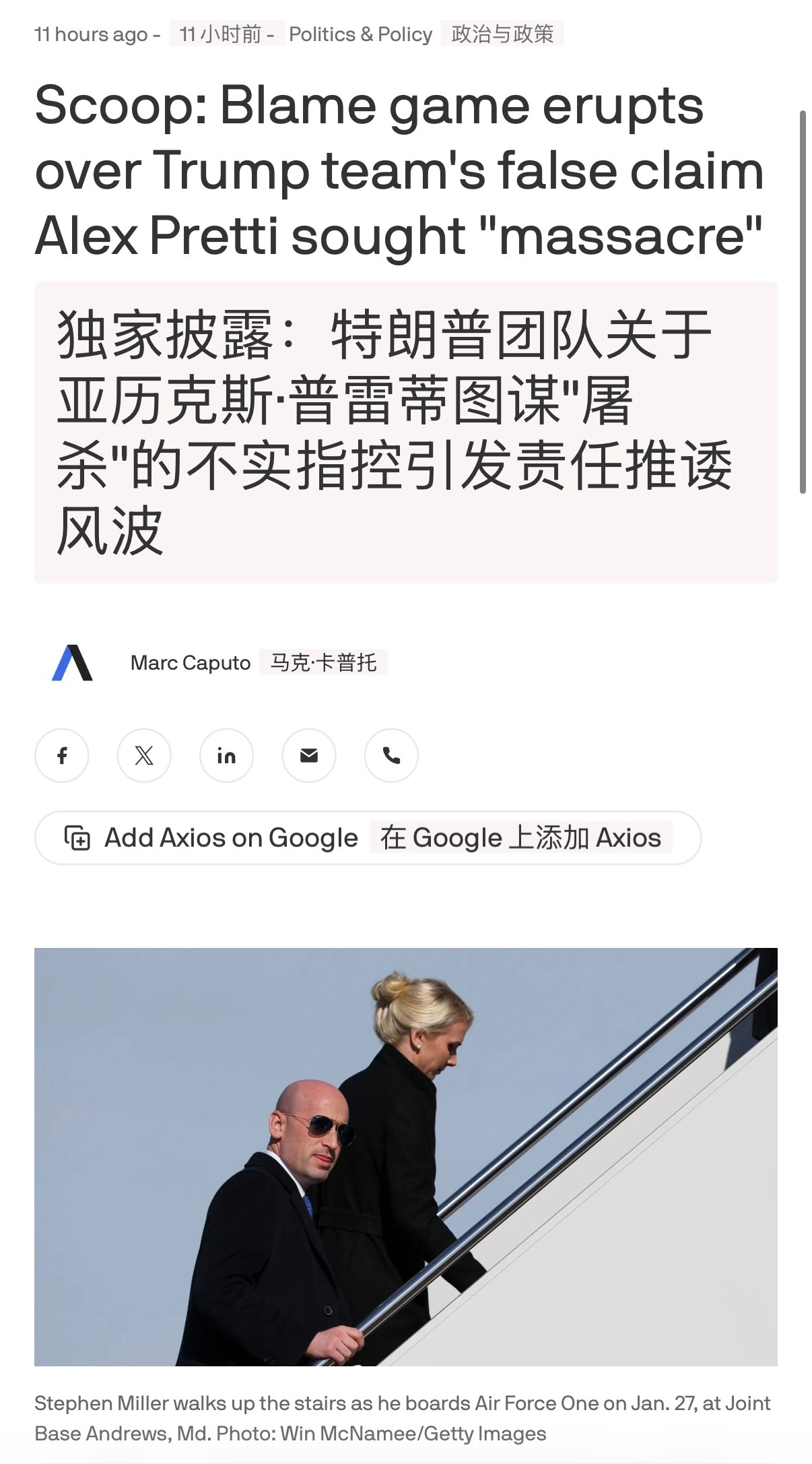 🔻突发新闻来自 Axios:克里斯蒂·诺姆关于“亚历克斯·普雷蒂想要屠杀联邦特工”的言论,是由斯蒂芬·米勒——这位最应为此次争议行动负责的人物——口述给诺姆及其部门的。🔻此消息基于四位向 Axios 披露内幕的消息来源。🔻黑锅在特朗普团伙内部高速飞行。它们知道这次搞砸了。美国前总统反对美国现政府海外新鲜事热点现场