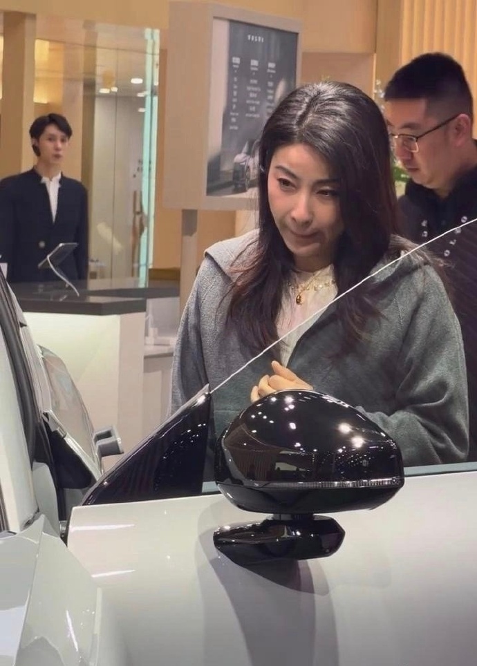 看车时偶遇44岁郭晶晶,头发也变白不少,真人低调很接地气