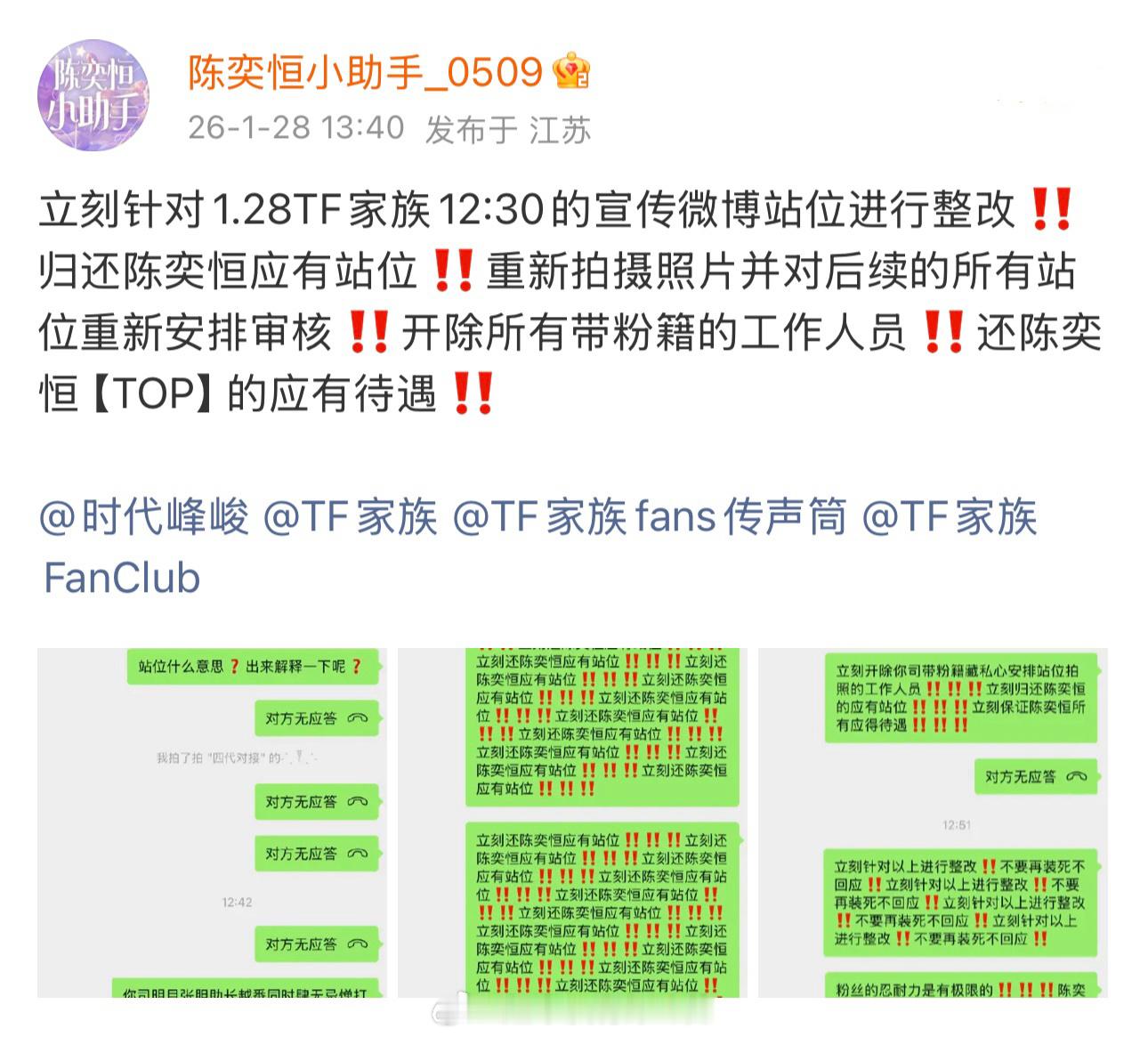 支持陈奕恒家维权,归还陈奕恒应有站位和待遇