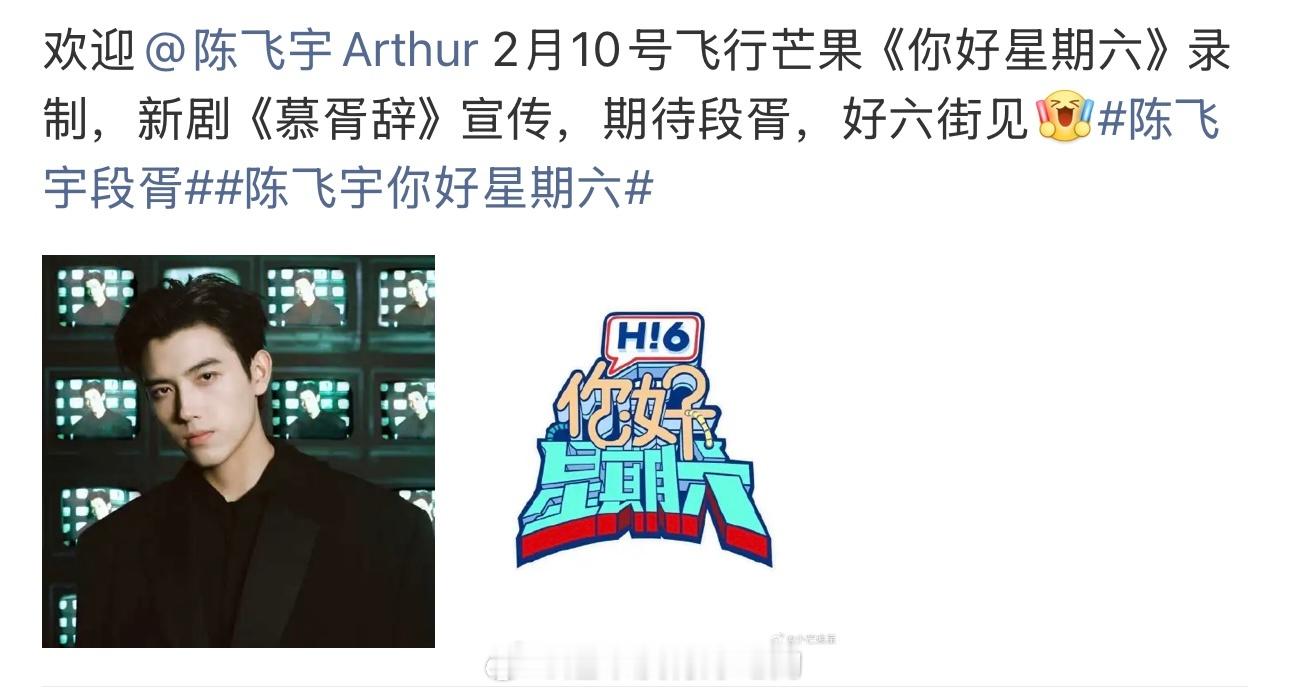 陈飞宇2.10要去hi6录制《慕胥辞》, 期待段胥