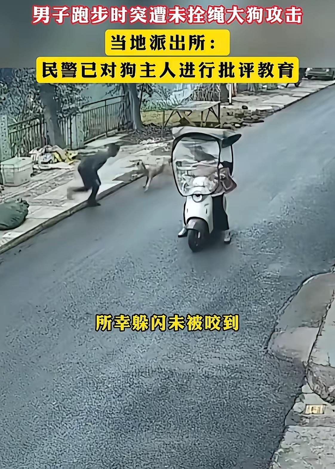 一只未栓绳,未戴嘴套的大型犬突然主动攻击正在跑步锻炼的王先生,当地派出所回复说,已批评教育狗主人! 事情发生在2026年1月25日的傍晚,四川宜宾的王先生傍晚正在跑步锻炼时,突然遭到一只未栓绳未戴嘴套的大狗攻击,据王先生回忆说,自已正在跑步锻炼,这只大狗毫无征兆的跑出来张嘴就咬,多亏王先生喜欢跑步锻炼,在连续躲闪下总算没有被咬到。 如果是人持刀攻击他人,但未伤到人,警方是否也只是批评教育一下行凶人? 狗咬人,报警后只是对狗主人批评教育,要是不小心撞死狗,或者狗咬人的时候人打了狗,狗就说是财产要别人赔偿。 别说派出所,人家也是依法行事。需要的是改变法律规定。遛狗不牵绳,直接拘留。 教育不是万能,处罚不落到实处一点也不管用。 怎么会是批评,不该刑拘吗?假如一个人持刀追着人砍,但没砍到,报警后,如何处置这个持刀砍的人呢?北京案的未毒到人都按危害公共安全罪判刑了,这个以未咬到人就批评教育了事,不应以危害公共安全罪刑拘吗? 躺在草丛里的老鼠药和疯狂咬人的狗 到底哪一个对公共安全的威胁更大?为什么危害性小的判4年,而危害性大的只需要批评教育? 如果狗主人只是没牵绳没带嘴套,可以批评教育,但狗己经追着人咬了,那就不是批评教育的事,而是应该罚款拘留!!! 这根本就是一场杀人未遂案件,狗主人饲养犬只以便在王先生跑步路上伺机对他发起攻击,已达到杀害目的,只是由于王先生及时躲避,才幸免于难!不然如何解释饲养的是这种大型犬?如何恰好出现在王先生跑步必经之路上?如何解释对王先生发起突然攻击且没有狗主在场和对狗只约束! 它这是威胁到路人的身心健康,派出所必须让狗主赔路人精神损失费和惊吓费,不能轻易这样放过狗和狗主!! 现在狗的地位越来越高了,我相信总有一天狗的地位会超过我们体现我们社会的爱心。👍 判刑 参照北京用鼠药毒死狗案件 鼠要毒死狗都能判人四年徒刑 养狗,把狗放到大街上,咬伤了人是已经构成危害公共安全罪的事实了,何止四年徒刑?