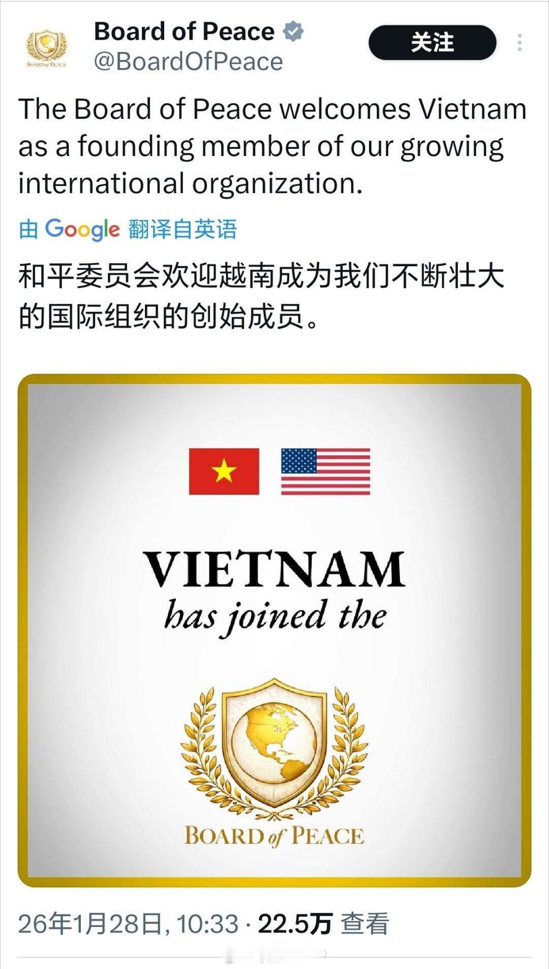 越南加入和平委员会越南加入特朗普领导的和平委员会