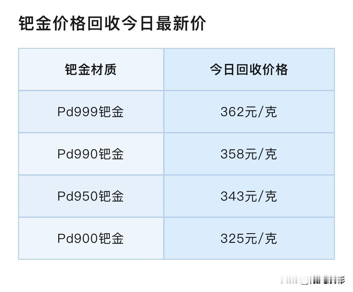 今日铂金、钯金报价!以及铂金回收重要知识! 今天铂金、钯金回收价格可以查看了! 那么,先来看看,今天铂金回收报价多少钱一克了? PT999铂金547元/克,PT990铂金541元/克,PT950铂金519元/克,PT900铂金492元/克。 同昨日铂金回收报价相比较,今天铂金回收价格都整体上涨了。 PT999铂金、PT990铂金回收价格各上涨了13元/克。 其中,PT950铂金、PT900铂金回收价格各上涨了12元/克。 再看看,钯金回收价格是多少钱一克? Pd999钯金362元/克,Pd990钯金358元/克,Pd950钯金343元/克,Pd900钯金325元/克。 同昨日钯金回收报价相比较,今天钯金回收价格整体下降了。 Pd999钯金、Pd990钯金、Pd950钯金、Pd900钯金回收价格各下降了7元/克。 根据黄金网分析消息: 在美元大跌以及避险需求等支撑下,国际金价延续昨日涨势,在隔夜暴涨170美元之后,今日又涨了50美元,现货黄金首次升破5200美元关口,并攀升至5230美元上方,再次刷新历史新高。 不到一个月时间,黄金价格就涨了900美元,涨幅超20%。 与此同时,国内基础金价站上1170元上方,原本想着金价要达到1200元还需要点时间,结果是1月就即将达到了。 白银、铂金和钯金等集体上涨。 截至今天:现货黄金上涨0.72%至每盎司5217.5美元,现货白银上涨1.37%至每盎司113.5美元,现货铂金上涨1.22%至每盎司2670.4美元,现货钯金上涨0.65%至每盎司1952.7美元。 黄金实时价格1166元,白银实时价格28.4元,铂金实时价格588.4元,钯金实时价格430.7元。 铂金回收有这以下4个知识点,特别的重要,谨防上当吃亏。 第一,铂金回收是不需要发票和以前的购买凭证的。如果有人跟你说因为没有发票要扣你手续费,那他一定是在坑你。 第二,铂金回收是没有折旧费一说的,不管你是戴了几十年还是刚刚买的,回收的时候只看重量和纯度,只要纯度是3个9以上的,回收价格都是一样的。 第三,卖之前一定要知道自己首饰的精准克重,以防被其他人偷秤。 第四,铂金回收就是按照当天的国际金价减个几块钱一克回收,所以要提前查一下当天的国际金价。 只要注意这4点,根本没有人能够坑得到你。 最后说声,所有信息,都只是提供参考价值! 投资有风险,理财需谨慎! 铂金价格 铂金回收行情 铂金回收价 白银铂金回收 铂金白金回收 铜川铂金回收 咸阳铂金回收 铂金条回收铂金价格 铂金回收行情 铂金价格波动 铂金回收价 铂金行情分析 白银铂金回收 钯金价格