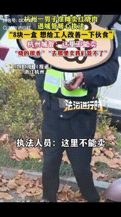被暖到了!杭州一男子摆摊卖红烧肉,刚开摊没多久,城管来了,男子本以为会被劝离,不料,城管却笑着说:“这里不能卖。”并出“主意”:“去他们工地里面卖,那里我们管不了!” 12月31日,跨年的日子里,一位男子在工地附近摆起了小摊。 他没卖别的,就一锅热气腾腾的红烧肉,专门给附近干活的工人准备。 这年头物价不低,可他一份红烧肉只卖8块钱。 从视频里能清楚看到,每份都打得满满当当,肥瘦相间的肉块堆得冒尖。 工人们闻讯都赶了过来,你一份我一份,没多久一锅肉就快见底了。 就在这时,城管队员巡逻到了这里。 男子心里一紧,以为免不了被劝离,赶紧停下手里的活。 没想到城管笑着开口,语气特别温和:“这里不能卖。” 紧接着又补了句:“去工地里面卖,那儿我们管不着。” 男子连忙应声,说自己是第一次来,卖完手里这份就走。 排队的工人还没散,城管也没催促,就站在一旁等着。 闻到红烧肉的香味,城管随口问了句价格,得知只要8块钱时,也忍不住点头。 要知道现在随便一份快餐都要二三十,8块钱能吃到满份红烧肉,实在难得。 男子说,自己就是想让工人们吃好点、多吃点,干活才有劲。 但他也懂规矩,肯定会配合城管的工作,绝不添乱。 很快最后几份红烧肉也卖完了,男子开始收拾摊位。 城管还特意多叮嘱了一句,让他找个不显眼的地方。 跟工人们说好取餐位置,既不违规又能方便大家。 这一幕被路人拍下传到网上,瞬间收获无数点赞。 其实熟悉杭州的人都知道,这样的暖心执法不是个例。 之前就有城管自掏腰包买下摊主的酸梅汁,既守规矩又帮人脱困。 不再是“一罚了之”的生硬管控,而是多了份换位思考的体谅。 有人说城管和摊主天生是“对立面”,可事实从来不是这样。 城管要维护城市秩序,摊主为了生计奔波,大家都在为生活努力。 这份执法里的“变通”,恰恰守住了规则的底线,也留住了人心的温度。 8块钱的红烧肉,是男子对工人的善意。 一句贴心指引,是城管对普通人的包容。 这两份善意撞在一起,就是最动人的城市烟火气。 网友们的评论也格外走心,满是认可和感动。 有网友说:“这才是为民执法,既有力度更有温度。” 还有人留言:“8块钱满满一份,老板实在,城管暖心,都是好人。” 也有网友分享:“遇到过类似的城管,不刁难人,特别暖心。” 城市的整洁有序很重要,但烟火气和人情味同样珍贵。 比起冷冰冰的管控,这样的柔性执法更能让人信服。 它让我们知道,规则不是用来为难人的,而是为了让生活更美好。