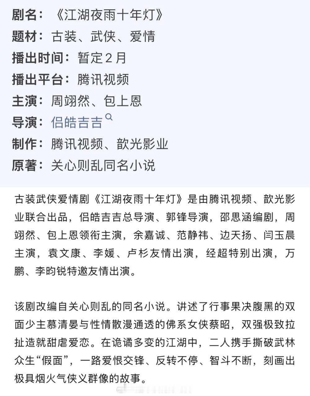 周翊然《江湖夜雨十年灯》播前招商,少主慕清晏早日见面