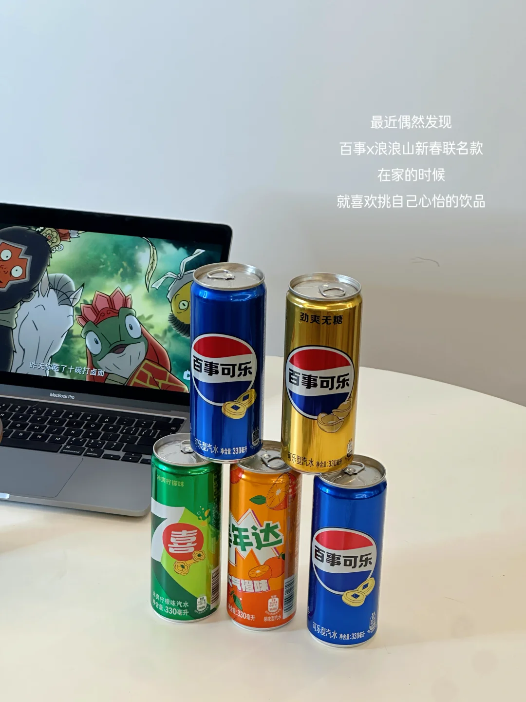 然后窝在沙发里打开喜欢的剧。最近偶然发现百事x浪浪山新春联名款,在家的时候就喜欢挑自己心仪的饮品,正好这次百事、美年达、7喜都在,不用纠结选择,每一罐都能解锁不同快乐。