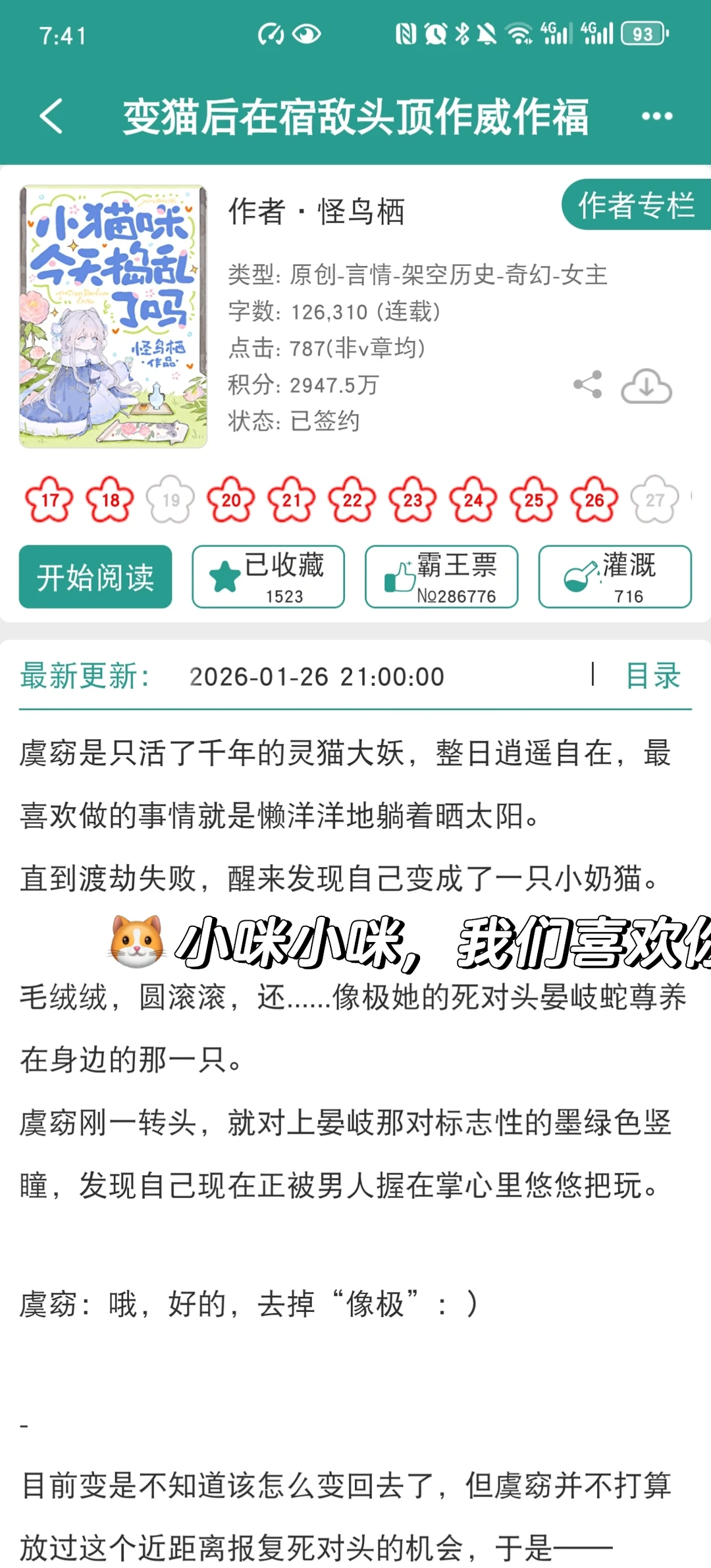 女主意外变成了宿敌养在身边的妖宠,仗着小猫身份拆家捣乱一条龙,偏偏男主不仅不生气,把女主宠得无法无天,还想方设法想要女主化形,甜得我发昏