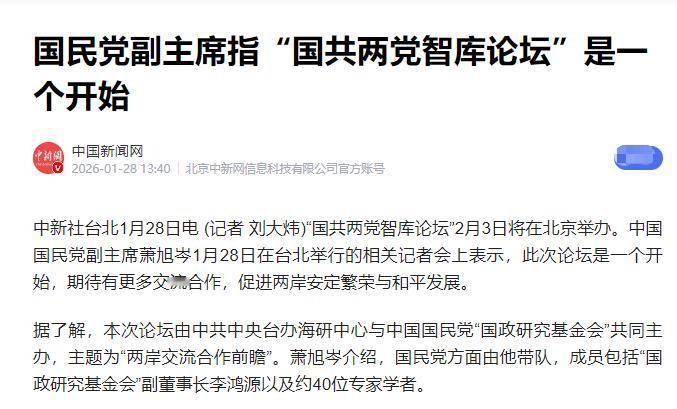 就在刚刚, 台“国民党”正式宣布, 1月28日,针对国民党重启“国共论坛”,台湾地区国民党副主席萧旭岑证实:他将偕同国政基金会副董事长李鸿源与40名专家学者,2月2日前往北京出席“两岸交流合作前瞻论坛”。   评几句:这话听着,好像是两岸交流要破冰了,是好事。往深了扒:好好的国共论坛,为啥非要改头换面?郑丽文自己为啥不敢去,派个副手带队?说白了,全是国民党的小心思,前怕狼后怕虎,既想跟大陆交流捞好处,又怕被民进党扣上“卖台”“亲共”的帽子,典型的投机取巧,玩文字游戏糊弄人!   先说说改名字这事儿,好好的“国共论坛”不用,非要改成“两岸交流合作前瞻论坛”,不是名字不好听,是怕被民进党抓着把柄骂。   以前“国共论坛”就是国民党和大陆这边直接对话,明明白白是两党层面的交流,现在把“国共”俩字抠掉,装成是专家学者凑一起聊事儿的智库交流,本质就是想把政治味儿抹掉。   民进党最擅长干的就是扣帽子,只要见着“国共”联动,不管干啥都喊“亲共”“卖台”,国民党是真被整怕了。   之前就有国民党的候选人,就因为和大陆企业吃了顿饭,被民进党剪了一堆所谓“密会”的视频到处散播,最后选举差了三万票没选上,这种亏吃多了,现在连名字都不敢用原名,就想躲个清静,少挨点骂。   再说说派人这事儿,郑丽文自己身为国民党主席,躲在后面不露面,派个副主席萧旭岑带队,还拉上四十个专家学者,里面特意加了个水利专家李鸿源,说白了就是想把交流包装成技术探讨,不是政党间的对接。   早几年马英九在任的时候,派的是正儿八经的核心人物吴敦义带队,去了直接就和大陆谈成十五项惠台政策,实实在在拿好处。现在郑丽文连面都不敢露,就是怕自己沾了两岸交流的边,被民进党盯上。   之前2025年高雄有个议员补选,国民党的议员就提了个两岸青年创业园的想法,结果被民进党骂成“卖高雄港”,不光议案没通过,连自己的席位都丢了,这个教训太深刻。   郑丽文现在说三月可能访陆,先让萧旭岑去探路,就是留了后手,万一出事了有副手扛着,要是谈成了有好处,自己再出来摘桃子,典型的算盘精,一点责任都不想担。   这背后更核心的,还是为了选举。2月2号开论坛,三月就要搞桃园、台中这五个市的议长选举,国民党算得门儿清。   派专家学者去谈旅游、环保这些老百姓关心的民生话题,既能在选举前秀一波“我在推进两岸交流”,拉那些中间选民的票,又不用像以前洪秀柱那样,敢提明确的两岸主张,结果被自己人围剿、被对手攻击。   就像2024年新北市的议员,靠着说“能让大陆观光客来买凤梨”,就拉到不少选票,这次国民党也是这个路子,论坛特意选了两岸旅游合作的议题,表面上是帮台东的民宿老板找客源,实际上就是盯着宜兰、花莲那些浅蓝选民的票。   但他们又不敢碰正经的政治话题,只能捡民进党剩下的民生议题聊,看看去的科技界代表,全是台积电看不上的中小企业主,跟以前国共论坛直接谈ECFA(两岸经济合作框架协议)那种大阵仗,根本没法比,说白了就是只敢捡软柿子捏,不敢动真格的。   这种操作的后遗症已经显现:论坛公告里的"共商两岸关系",被绿媒拆解成12个"统战关键词";萧旭岑刚出发,民进党就翻出他2019年参加"海峡论坛"的旧照,造谣"国民党用40人换军购预算"。   国民党不是不知道这些套路,只是算准了大陆不会在论坛上提政治条件——就像2025年福建向金门供水200万吨,民进党骂了三年"统战水",最后金门老百姓照喝不误。现在国民党想复制这种"实惠在前,争议在后"的模式,用智库交流的壳,装民生合作的馅,既讨好大陆赚政策,又躲开民进党的"红帽子"攻击。   但算盘打得再精,也藏不住底气不足。对比2005年连战带着70人的代表团直飞北京,现在40人的团队里有23个是第一次去大陆的学者;当年论坛能出15项惠台措施,现在连"承认台湾学历"这种旧议题都不敢提。   国民党心里清楚,现在的两岸环境早不是马英九时代——2025年台湾青年对大陆好感度跌破21%,民进党靠"抗中"基本盘能稳拿38%的选票。   这种情况下,任何实质性的两岸接触都可能变成选举毒药,所以只能玩"去政治化"的擦边球:让学者谈技术,让智库做方案,自己躲在幕后摘桃子。   说到底,国民党的"改头换面"不是创新,而是20年来反复上演的老戏码。从2008年的"不统不独不武"到2016年的"一中同表",每次想突破都被民进党的"卖台"指控打回去。   这次派副手、改名字、限议题,看似精明,实则暴露了根本问题:既想享受两岸交流的红利,又不敢承担政治责任;既想拉拢中间选民,又怕失去浅蓝基本盘。   这种首鼠两端的心态,让国民党在两岸议题上永远慢半拍——当民进党用"抗中"动员基本盘时,国民党只能用"交流"抢残羹冷炙,最后连自己都分不清,到底是在推动和解,还是在表演和解。