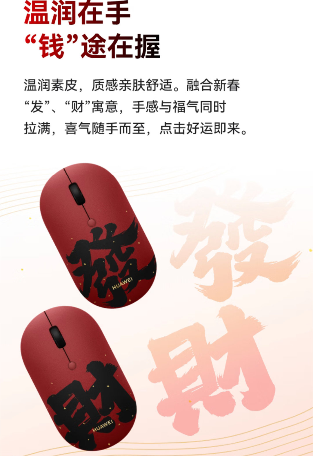 【169元华为无线鼠标Slim素皮版首销,可选“发”“财”双字】华为宣布旗