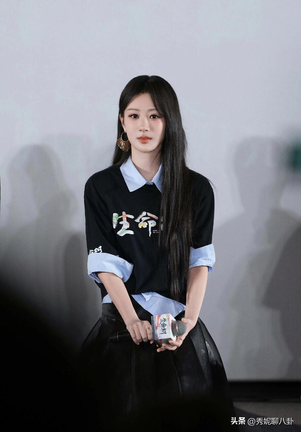 杨紫新剧发布会造型直接刷屏热搜,黑长直配文化衫的简约穿搭,堪称内娱简约天花板!