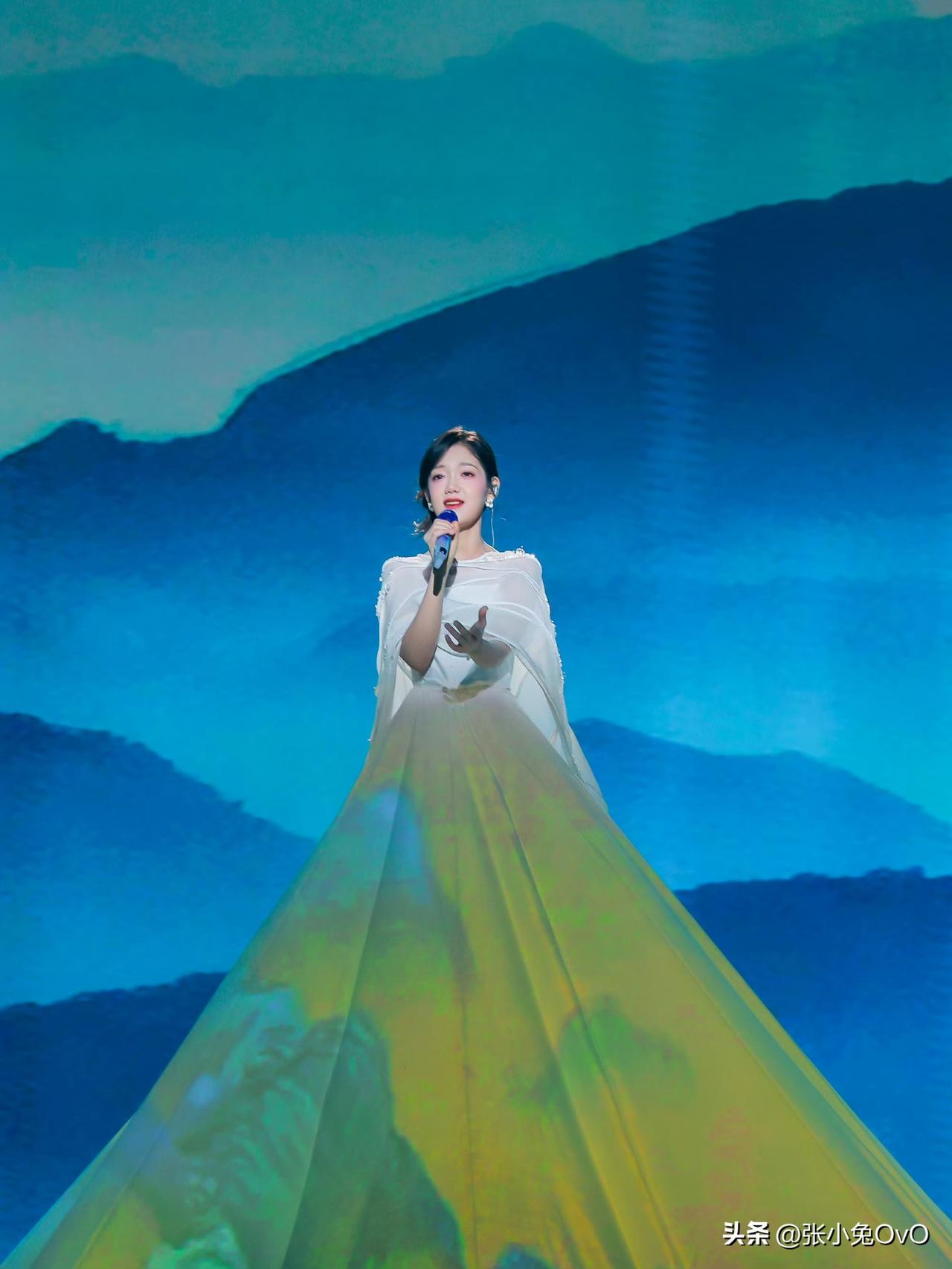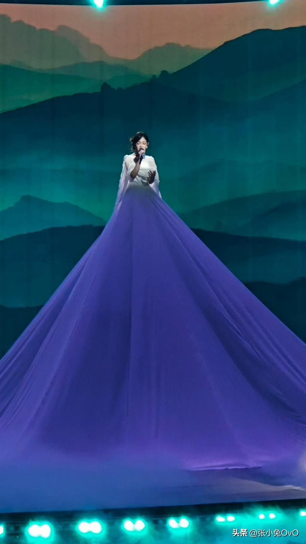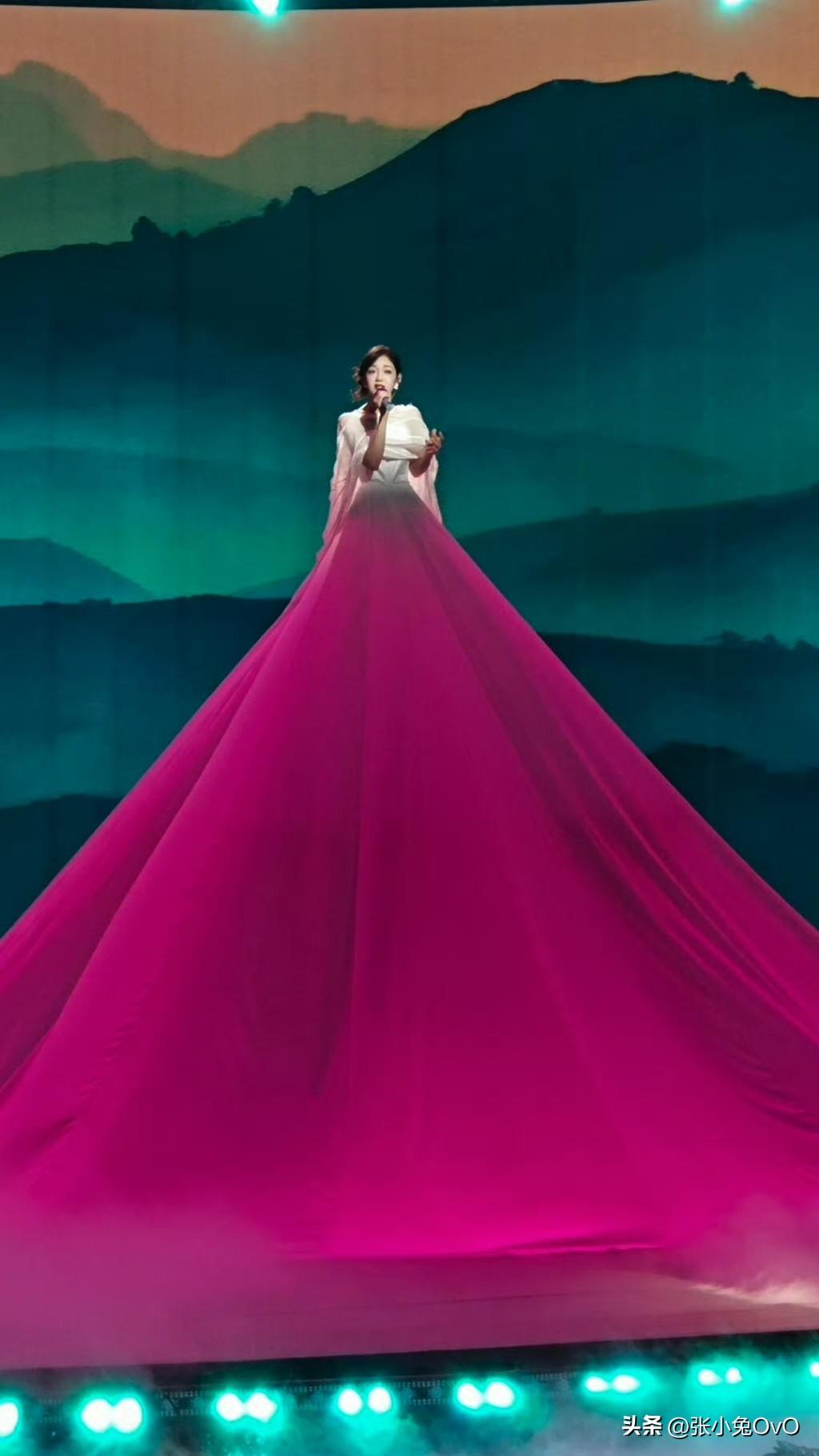 以为是山没想到是她的裙子 笑富了,以为是山没想到是她的裙子。 希林娜依·高在录制央视《非遗晚会》的视频时造型引起网友热议。 没点开之前,以为是她站在五颜六色的山上面。点开图一看原来是她的裙子!这裙子有7米长。不仅在颜色上做了改变,竟然还把《千里江山图》穿在了身上! 有点期待这个舞台了呢!